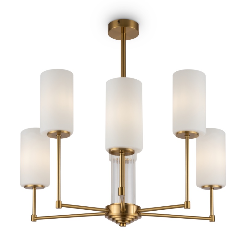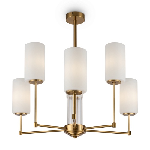 Выразительную силу простых художественных решений демонстрирует серия Agnes: дизайнеры отказались от стандартного одноуровневого расположения плафонов, разместив их на разной высоте. Всего одна деталь меняет настроение модели, а элегантная классика обретает современные черты. Арматура светильника выполнена из металла и окрашена в цвет латуни и хрома. Лаконичный силуэт дополняется стеклянным декором центрального стержня: рельефная фактура оттеняет гладкую поверхность рожков. Белые плафоны из полупрозрачного стекла мягко приглушают световой поток, делая его уютным и обволакивающим. Оригинальное дизайнерское решение позволяет использовать модель как в классических, так и в современных интерьерах с настроением ар-деко, строгой неоклассики или бунтарской эклектики. Люстры на 6 и 8 плафонов и бра – готовый ансамбль для комплексного освещения пространства в единой стилистике.