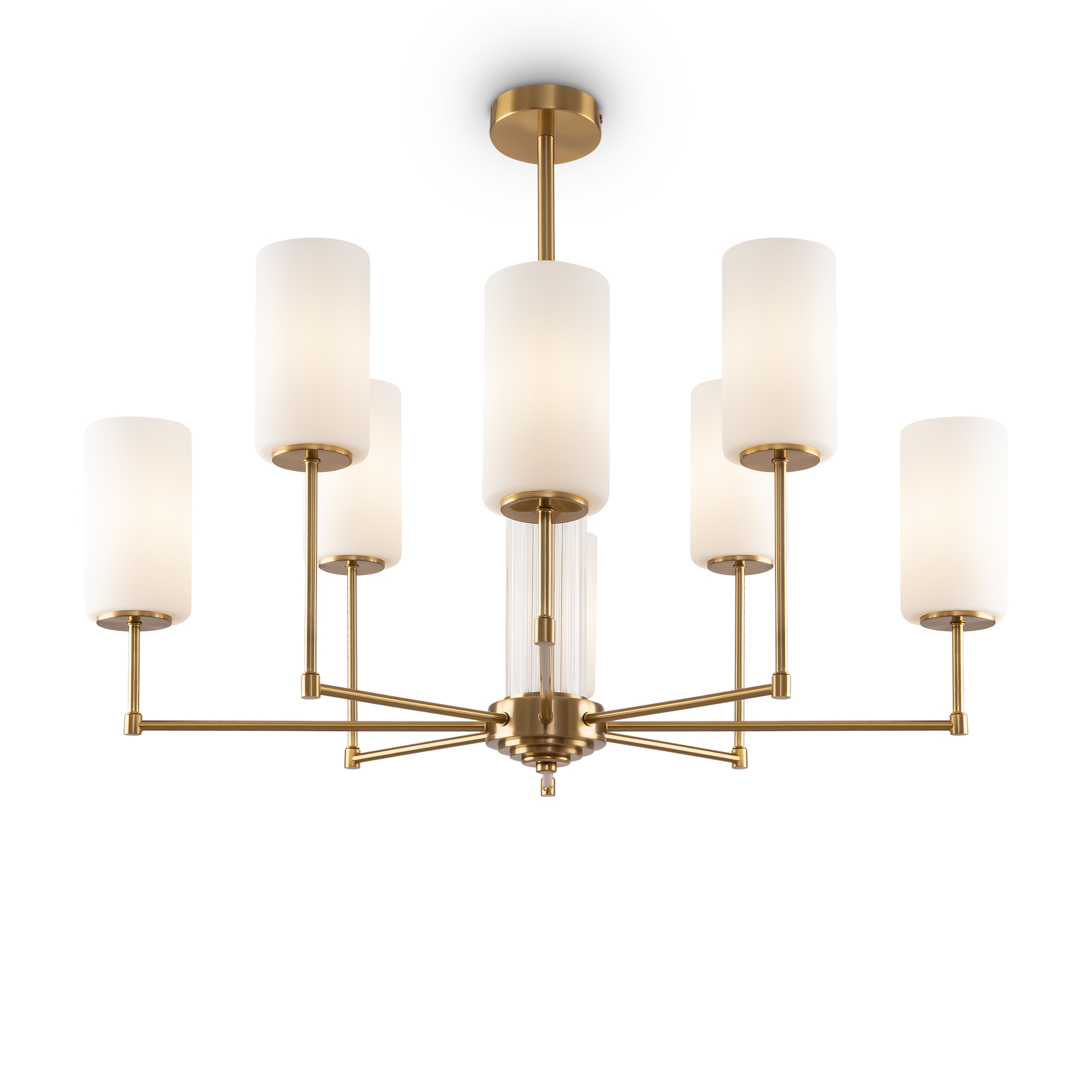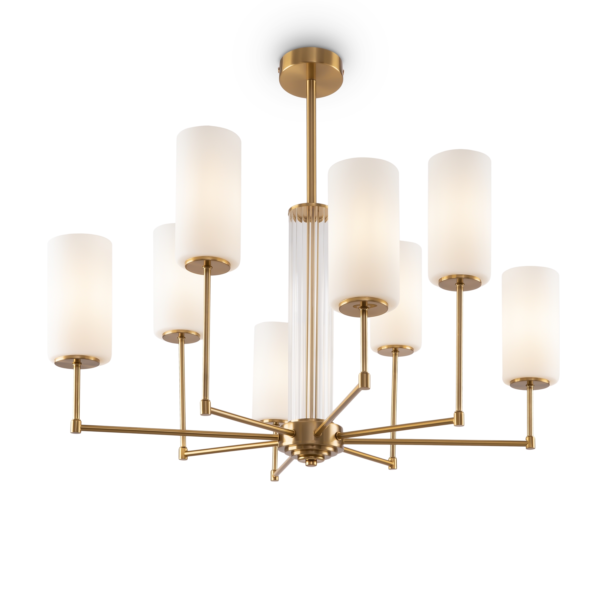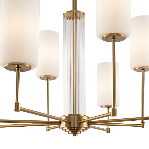 Выразительную силу простых художественных решений демонстрирует серия Agnes: дизайнеры отказались от стандартного одноуровневого расположения плафонов, разместив их на разной высоте. Всего одна деталь меняет настроение модели, а элегантная классика обретает современные черты. Арматура светильника выполнена из металла и окрашена в цвет латуни и хрома. Лаконичный силуэт дополняется стеклянным декором центрального стержня: рельефная фактура оттеняет гладкую поверхность рожков. Белые плафоны из полупрозрачного стекла мягко приглушают световой поток, делая его уютным и обволакивающим. Оригинальное дизайнерское решение позволяет использовать модель как в классических, так и в современных интерьерах с настроением ар-деко, строгой неоклассики или бунтарской эклектики. Люстры на 6 и 8 плафонов и бра – готовый ансамбль для комплексного освещения пространства в единой стилистике.