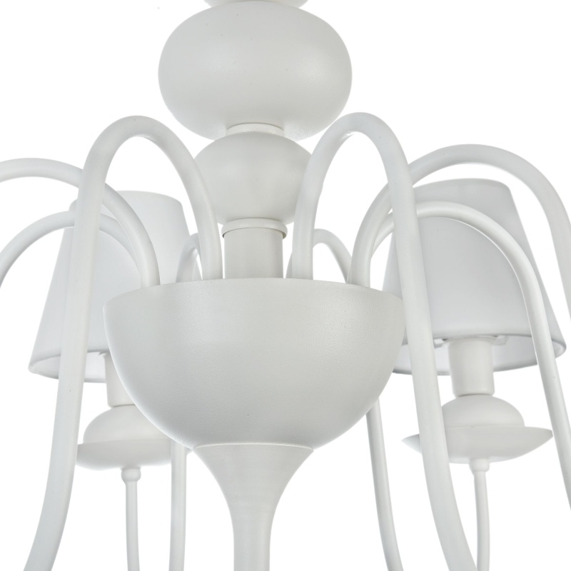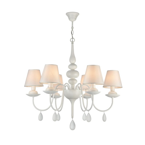 Дизайн светильников – это дуэт вечной классики и высоких технологий. Арматура и абажуры выполнены в приятном для глаз теплом белом цвете. Абажуры сделаны из ПВХ и ткани, а арматура - из стекла и металла. Светильники украшены декоративными стеклянными подвесками в виде капель.