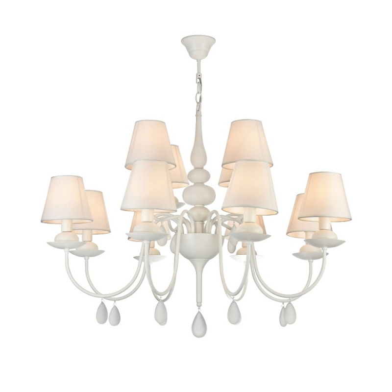 Дизайн светильников – это дуэт вечной классики и высоких технологий. Арматура и абажуры выполнены в приятном для глаз теплом белом цвете. Абажуры сделаны из ПВХ и ткани, а арматура - из стекла и металла. Светильники украшены декоративными стеклянными подвесками в виде капель.