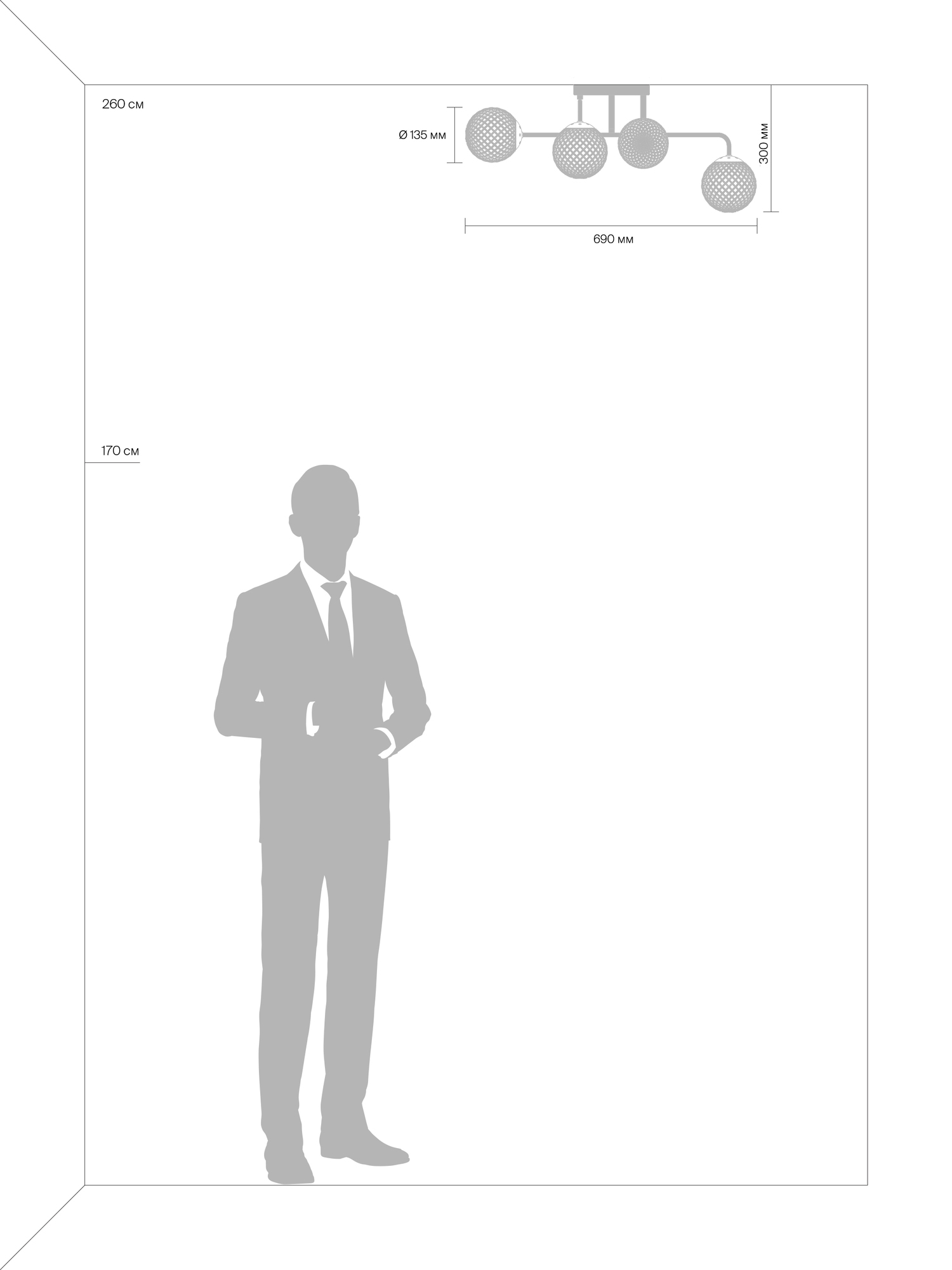• Диаметр потолочной чаши (мм)