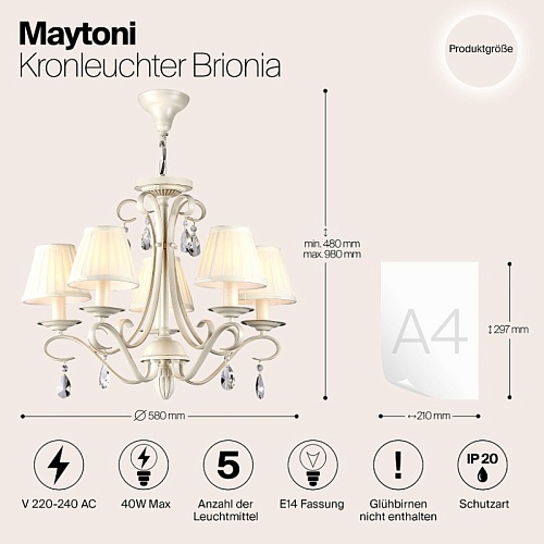 Характеристики Люстра Maytoni Brionia ARM172-05-G
