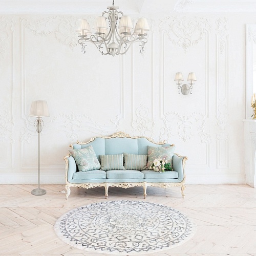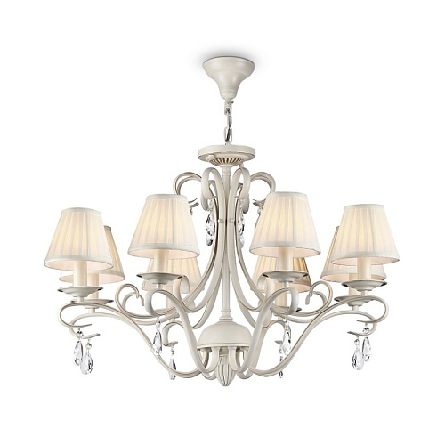Материал арматуры — металл, цвет — бежевый. Белые абажуры из органзы изготовлены по технологии намотки. Декоративные подвески из прозрачных кристаллов. Регулируемая высота подвесных светильников. Источник света - лампа с цоколем Е14.