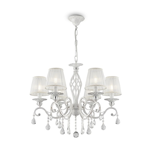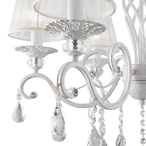 Металлическая арматура, оттенки – латунь, белый с золотом. Модели с открытыми источниками света и с абажурами. Абажуры из органзы, оттенки – бежевый, белый. Закрученный по спирали декор центральной оси. Подвески из кристаллов. - Высота люстр регулируется. Источник света - лампа с цоколем Е14.