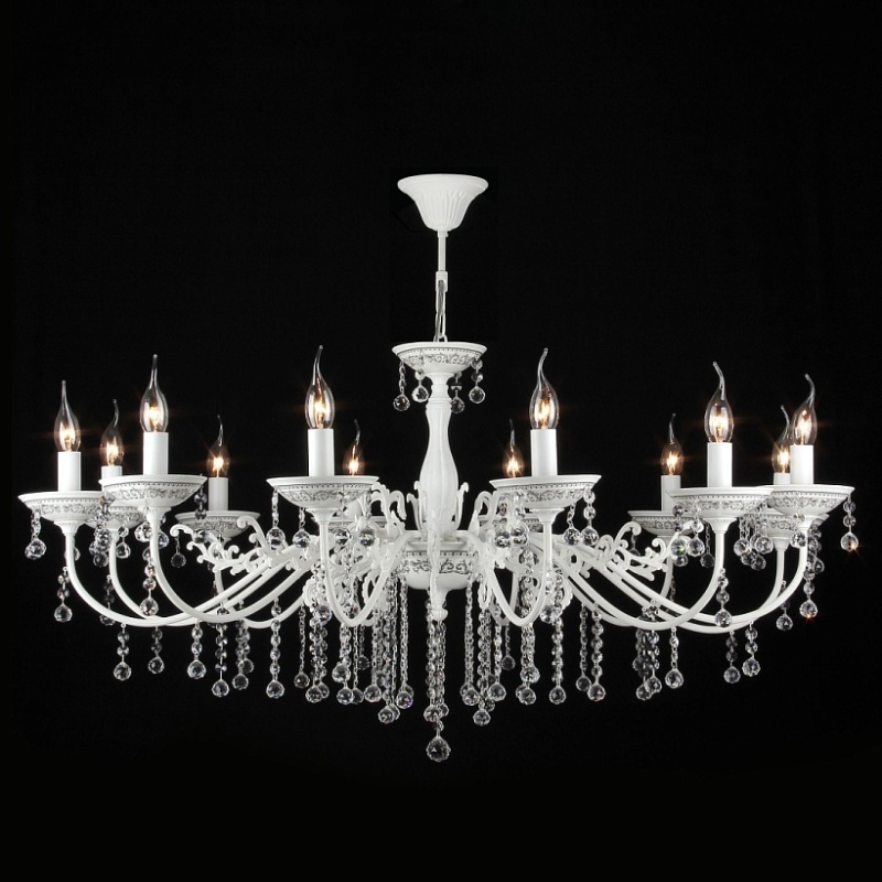 Арматура – металл в белом цвете. Керамические элементы с надглазурной рос писью. Декоративные подвески-кристаллы. Высота люстр регулируется длиной цепи.
