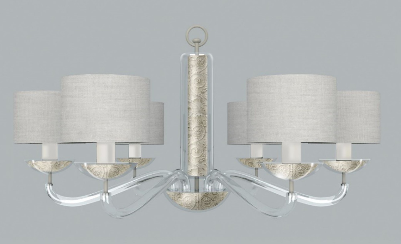 Металлическая арматура в бронзовом цвете с эффектом искусственного старе ния. Текстильные абажуры изготовлены по технике намотки, оттенок – натураль ный лен. Декор – полирезин с флористическим узором, заключенный в прозрач--- ное стекло. Крепление 2 в 1 – монтаж с цепью и без нее.
