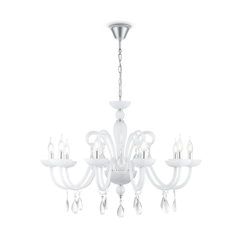 Оригинальный внешний вид светильников серии обусловлен матовыми стеклянными деталями, которые составляют большую часть конструкции. Светильники украшены подвесками в форме капель. Они закреплены на рожках с помощью стеклянных колец. Высоту люстр возможно изменить, регулируя высоту цепи.
