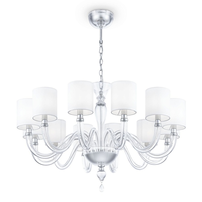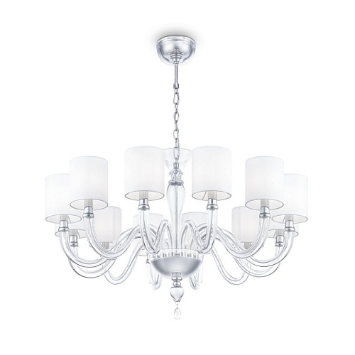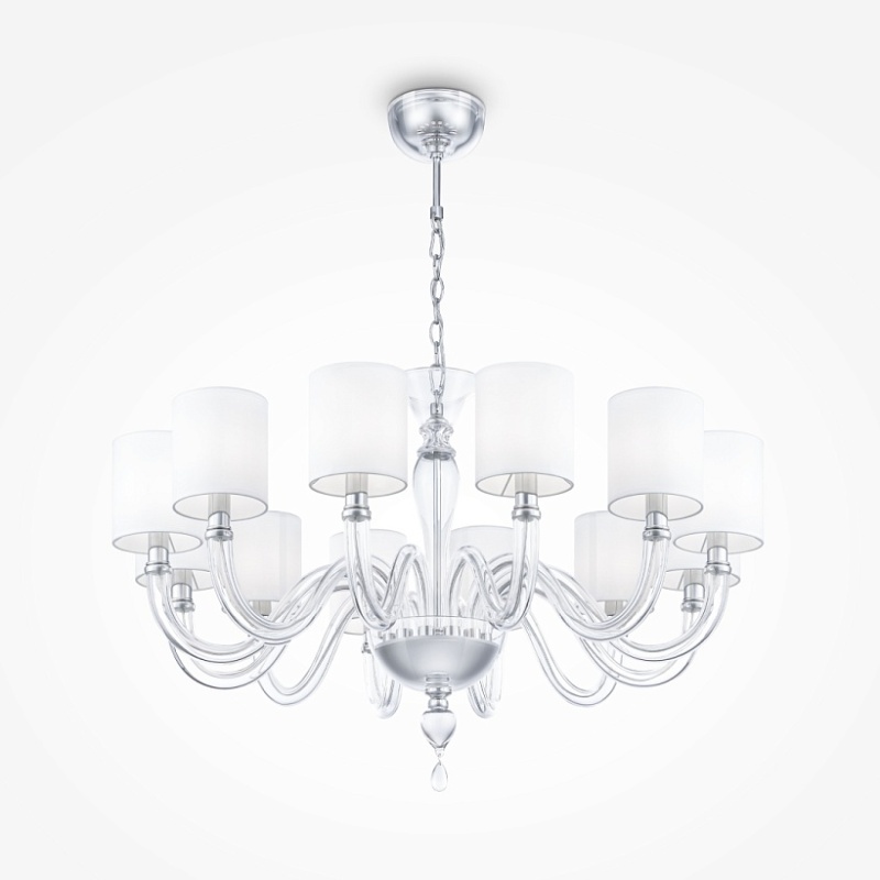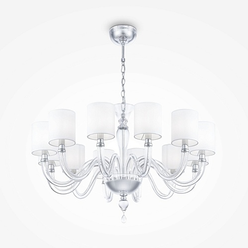 Серия Leti актуальна для интерьеров в неоклассическом стиле. Большая часть конструкции светильников состоит из деталей, изготовленных из прозрачного выдувного стекла. Абажуры из белого текстиля, нанесенного на ПВХ. Высоту люстр возможно отрегулировать длиной цепи.