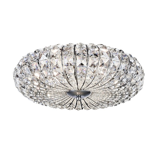Материал арматуры – металл, цвет – никель. Металлический каркас абажура декорирован гранеными кристаллами. Компактная высота.