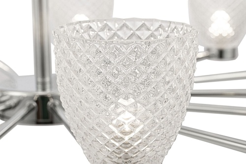 Серия современных светильников. Плафоны сделаны из прозрачного стекла со "стеганным" эффектом. Металлические детали выполнены в цвете хром. Благодаря чему модели выглядят легко и сдержанно. Они станут украшением в любом интерьере, дополнив его своей оригинальностью. Высоту подвесных светильников можно отрегулировать длиной цепи.