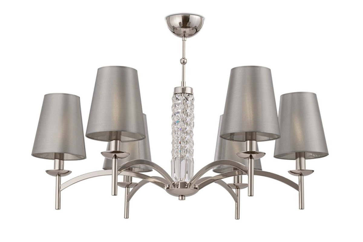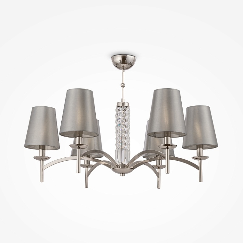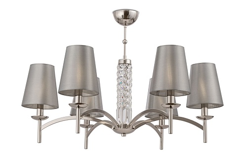 Материал арматуры – металл, цвет – никель. Абажуры из текстиля, нанесенного на ПВХ. Цвет абажуров – серый. Декор - граненые кристаллы.