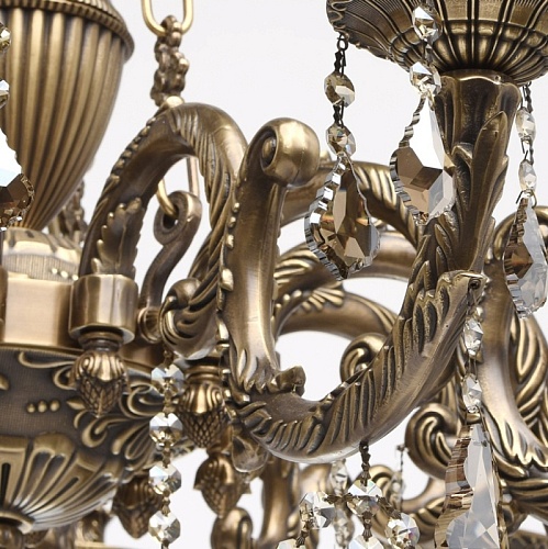 В светильниках Chiaro используются латунь, бронза, фарфор, керамика, хрусталь (K9). Поталь из золота и серебра придает дополнительный шарм.