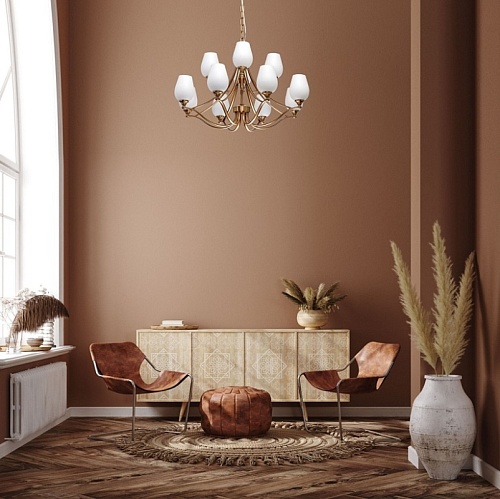 В светильниках Chiaro используются латунь, бронза, фарфор, керамика, хрусталь (K9). Поталь из золота и серебра придает дополнительный шарм.