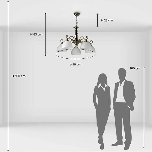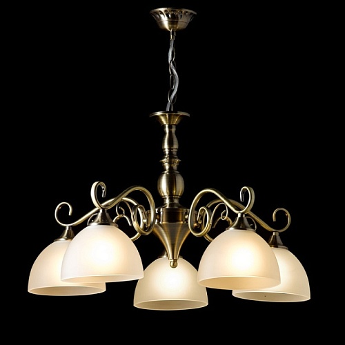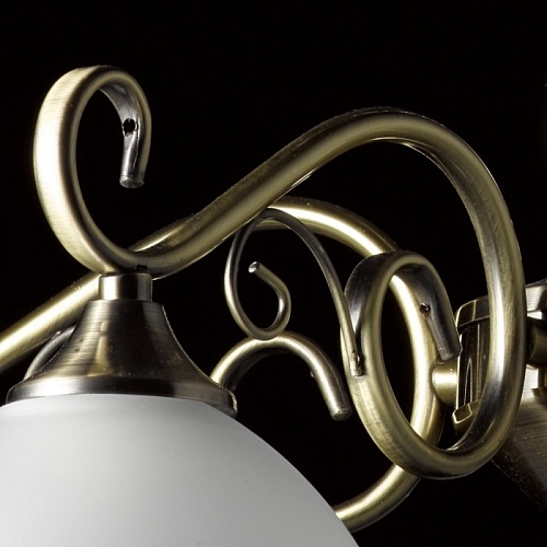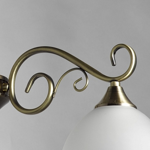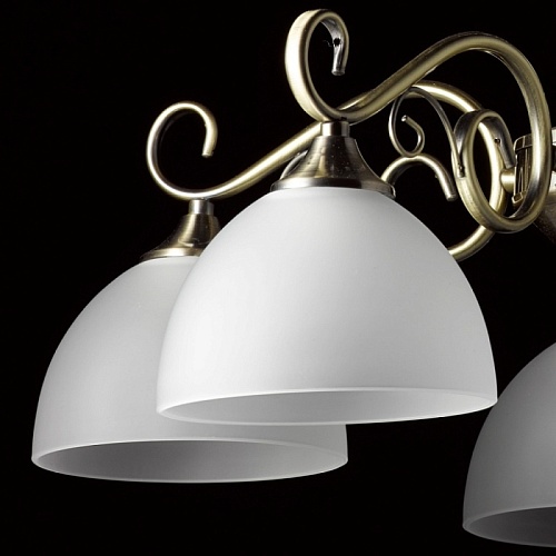 Основание светильника выполнено из металла и гальванизировано в цвет античной бронзы. Стеклянные плафоны отлиты в форму и матированы.