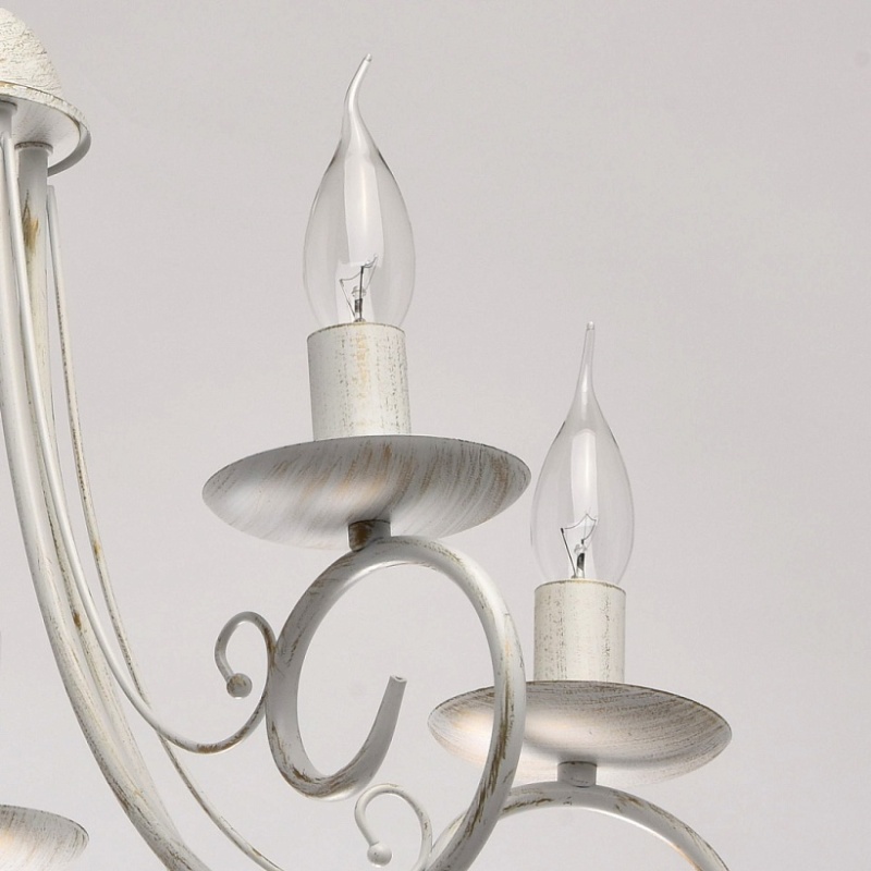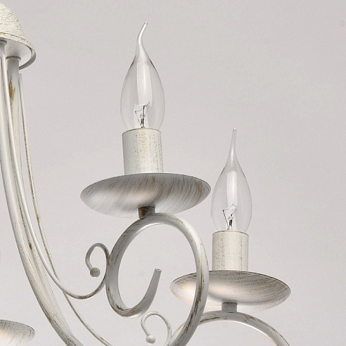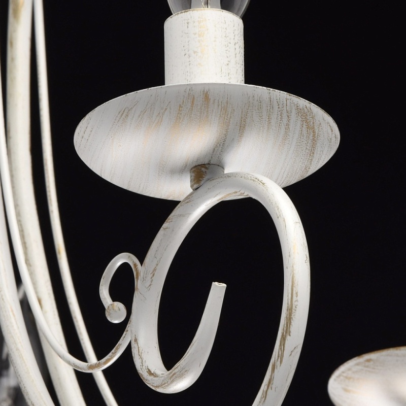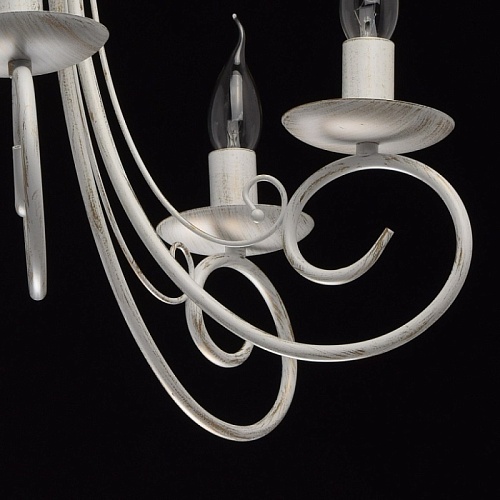Основание: металл, обработка по технологии хай-лайт - основной слой белый матовый, декоративный слой - золотой, рожки выполнены по технологии проката на роликовом станке, декоративные розетки выполнены по технологии прессования.