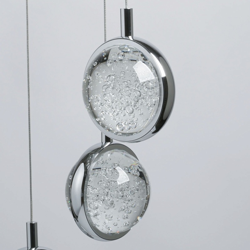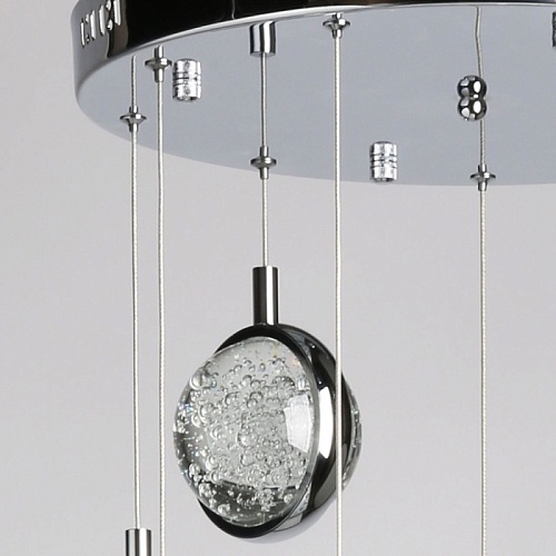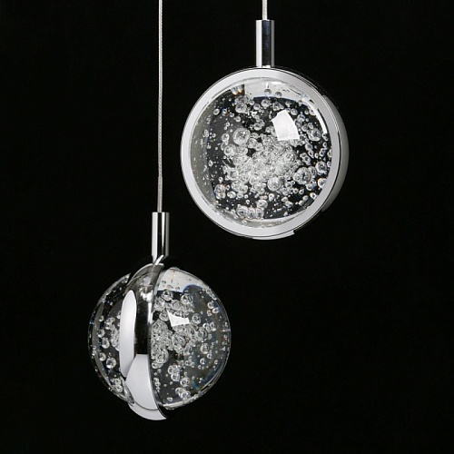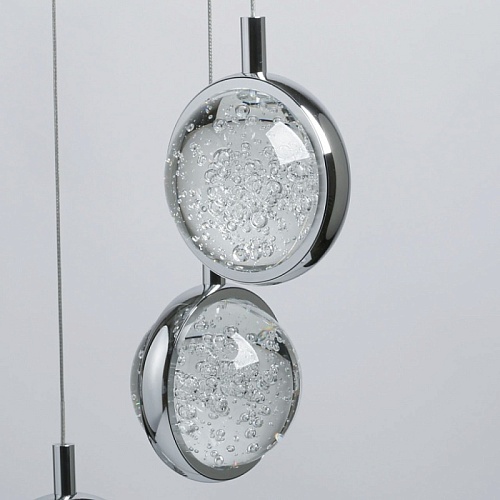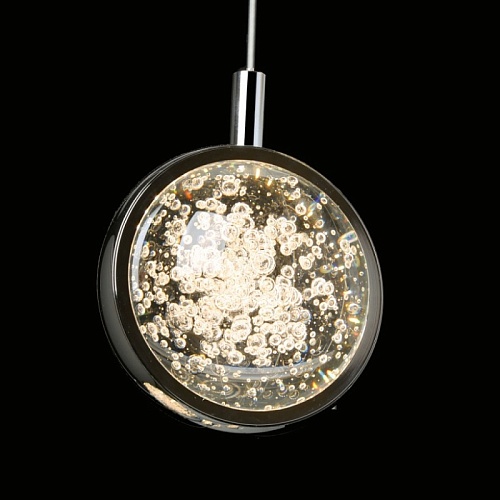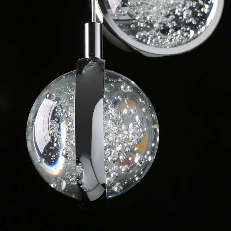 Основание светильника выполнено из сплава алюминия с цинком, обработано по технологии брашинга и гальванизировано в цвет хрома. Светодиодный источник света закрыт сферой из стекла с включениями пузырьков.