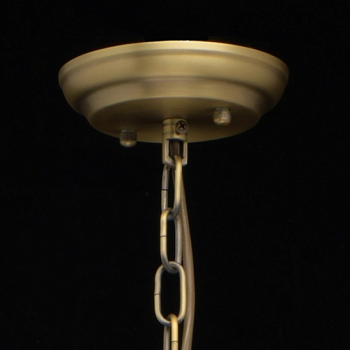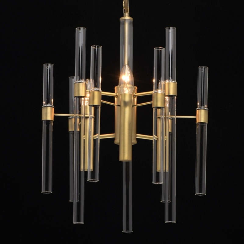 Основание светильника выполнено из металла и гальванизировано в цвет латуни с патинированием. Декор в виде стеклянных полых трубок.