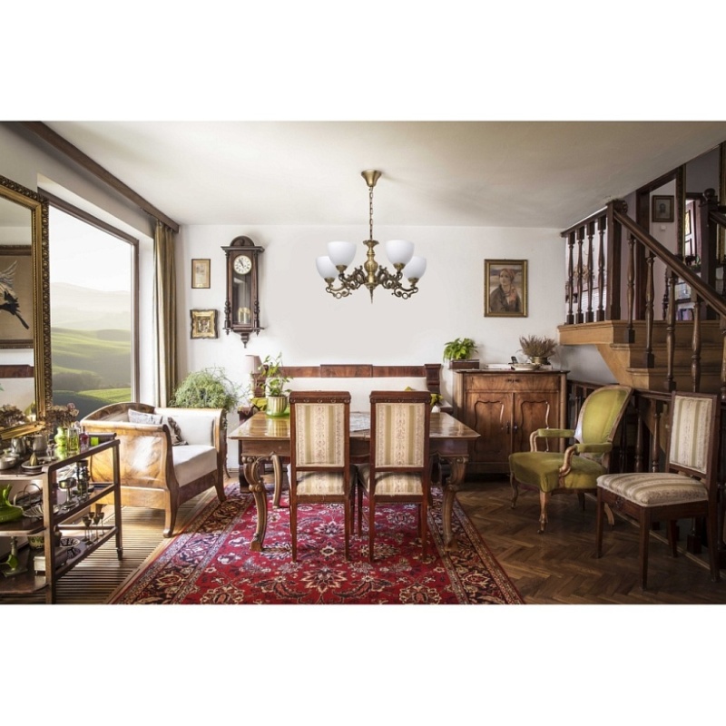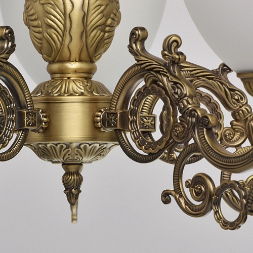Основание: комбинация сплавов металлов, гальванизировано в цвет античной бронзы, патинирована и лакирована.Потолочная чаша: металл, обработка на токарном станке.Корпус, декоративные розетки: металл, прессование.Центральный стержень, рожки, декоративная гайка: сплав алюминия, художественное литье.Плафоны: отлиты в форму, матированы.