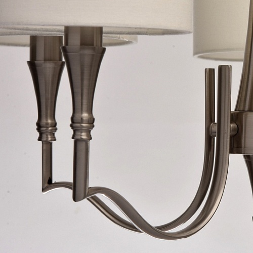 Основание: металл, гальванизировано в цвет античного никеля. Абажуры: 2-ух слойные, снаружи фактурный текстиль натурального цвета, внутри термостойкий акрил.