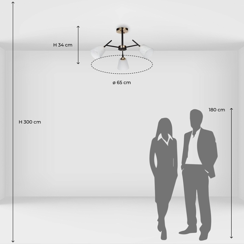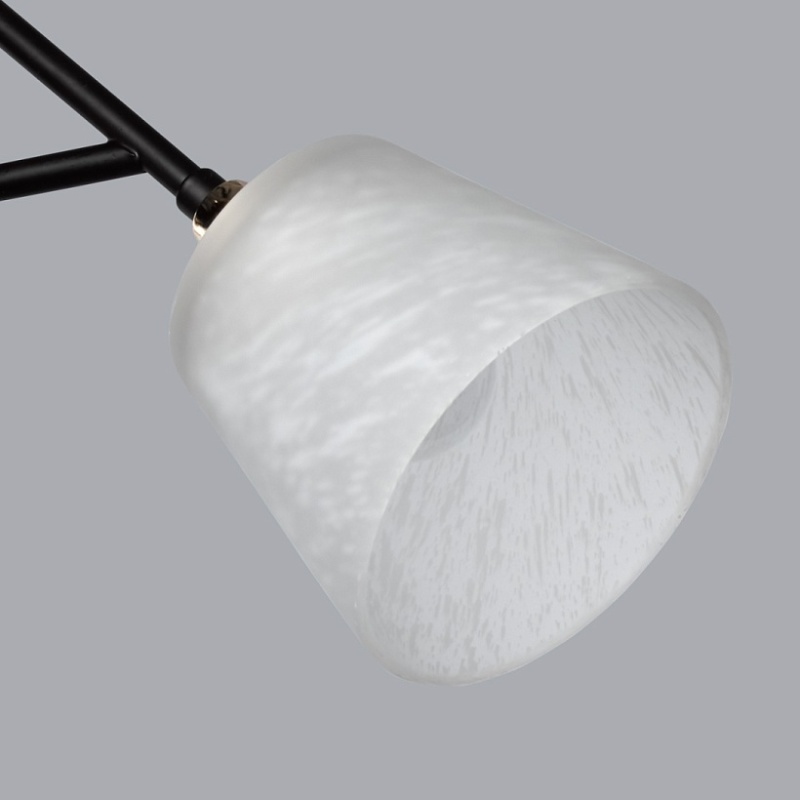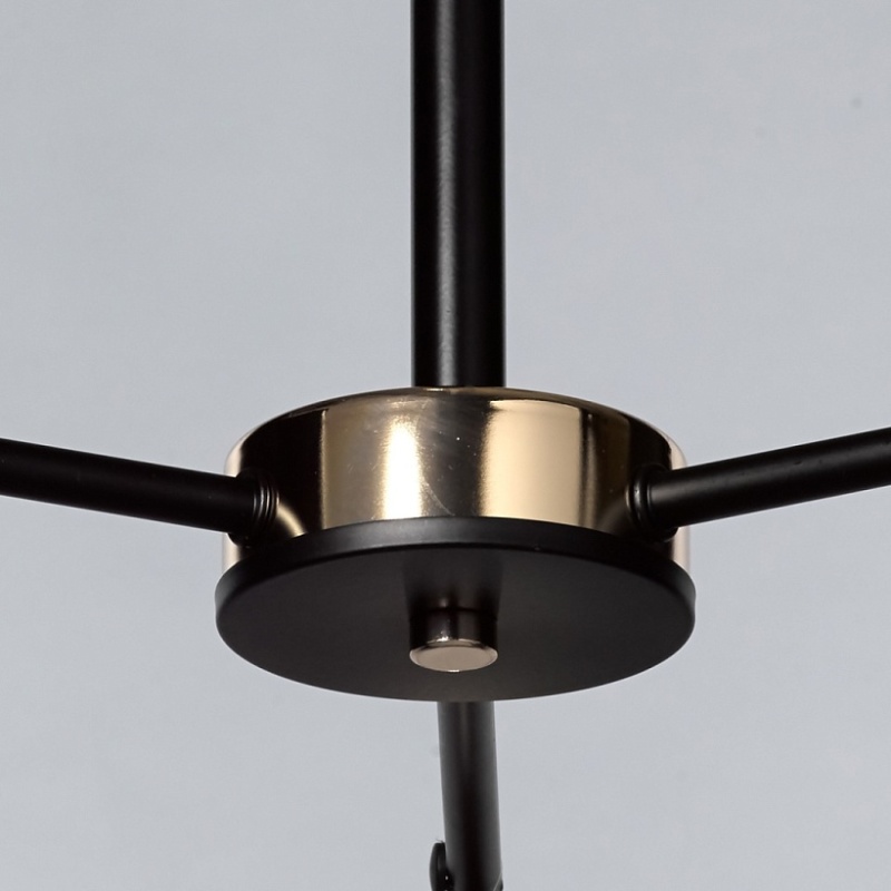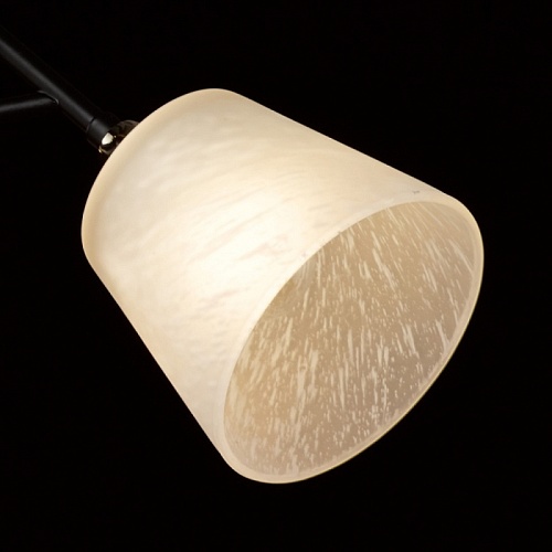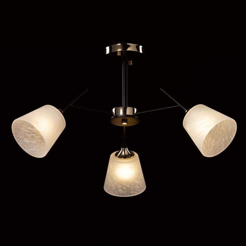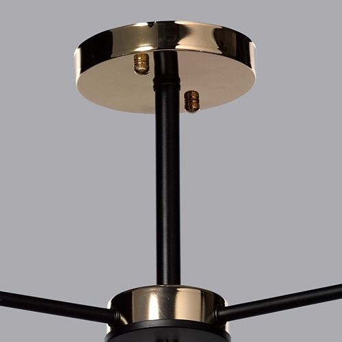 Основание светильника выполнено из металла и окрашено в черный цвет. Отдельные элементы основания гальванизированы в цвет золота. Плафоны выполнены из алебастрового стекла.