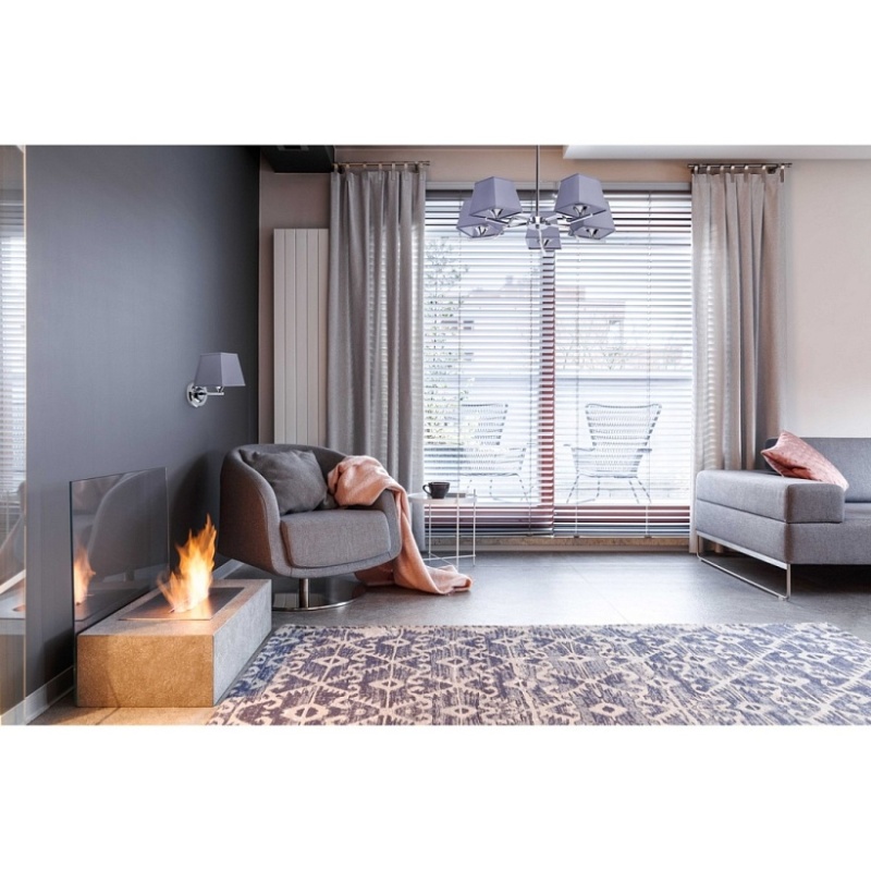 Основание: металл, гальваника в цвет хрома. Абажур: текстиль, цвет графит, термостойкий акрил внутри.