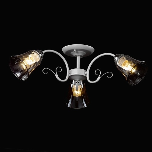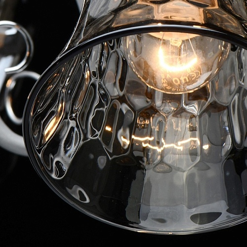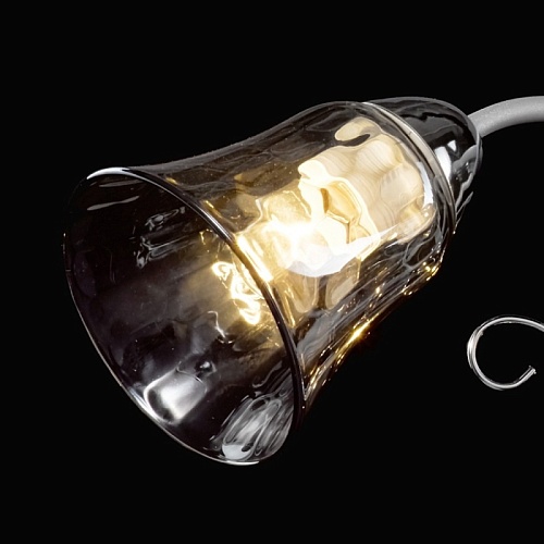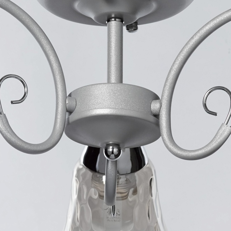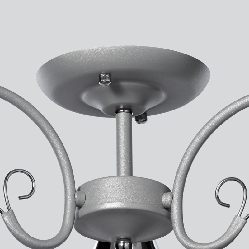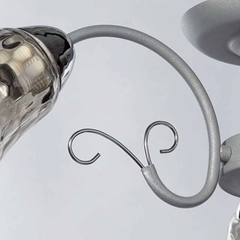 Основание светильника выполнено из металла и обработано по технологии порошкового окрашивания в серый цвет. Отдельные элементы основания гальванизированы в цвет хрома. Стеклянные плафоны гальванизированы в дымчатый цвет.