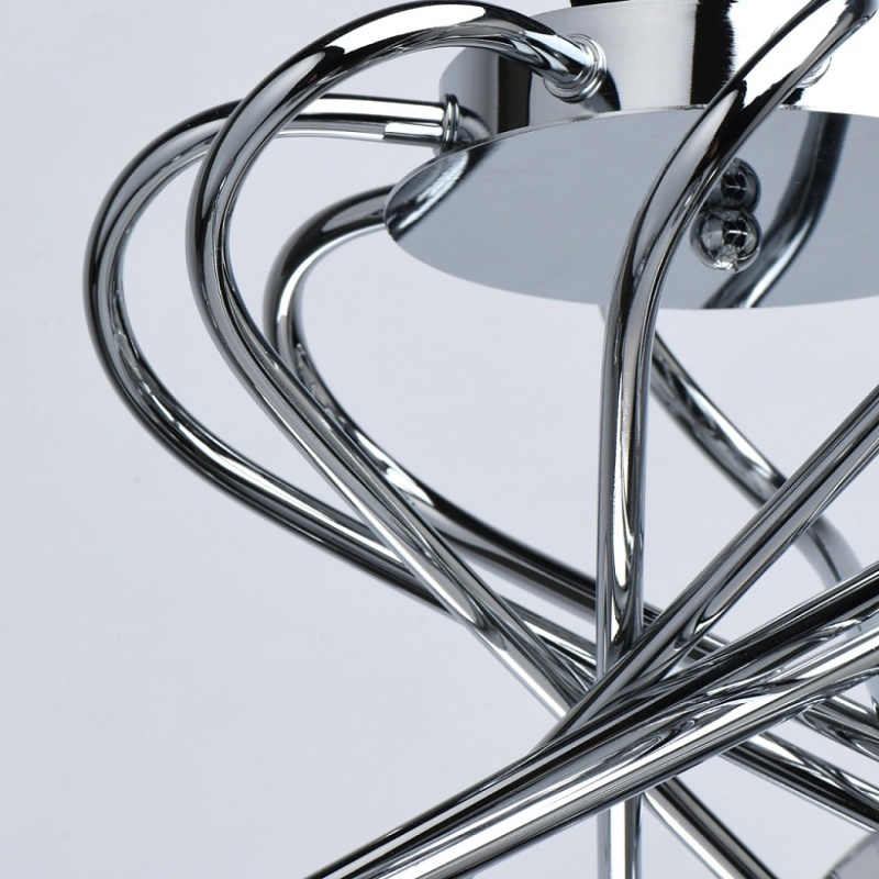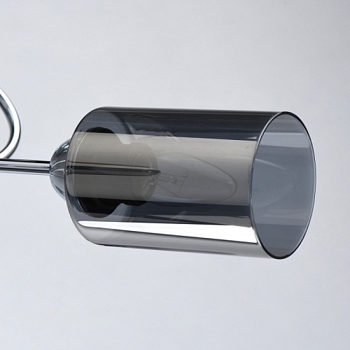 Основание светильника выполнено из металла и гальванизировано в цвет хрома. Стеклянные плафоны гальванизированы в дымчатый цвет.