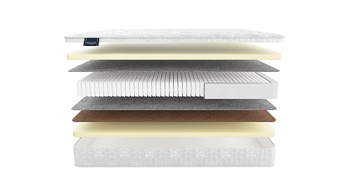 • Первая из сторон содержит расслабляющий и запоминающий контуры тела Мemory Foаm, а вторая – состоит из сочетания Мemory Foаm с латексированным кокосом, прибавляющим всей конструкции необходимую долю прочности и плотности.