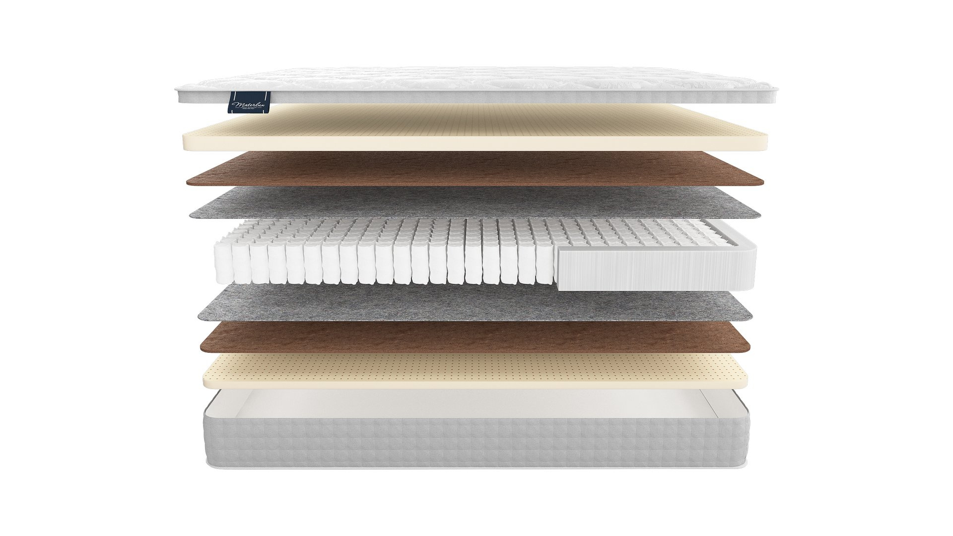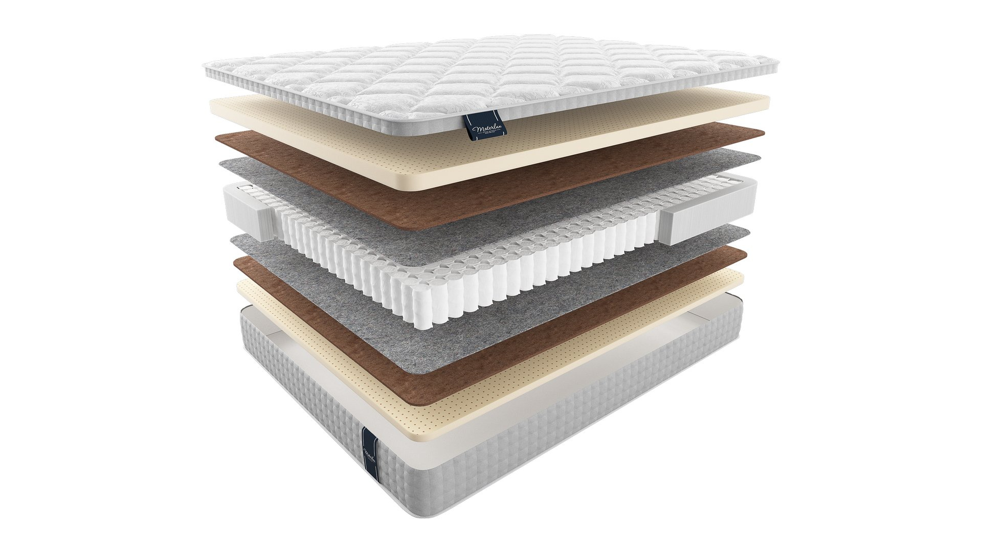 • Слои латекса положены на прослойку из плотной кокосовой койры, обеспечивающей изделию необходимую прочность и придающих ортопедический эффект.