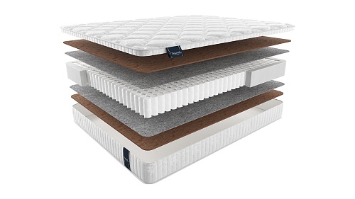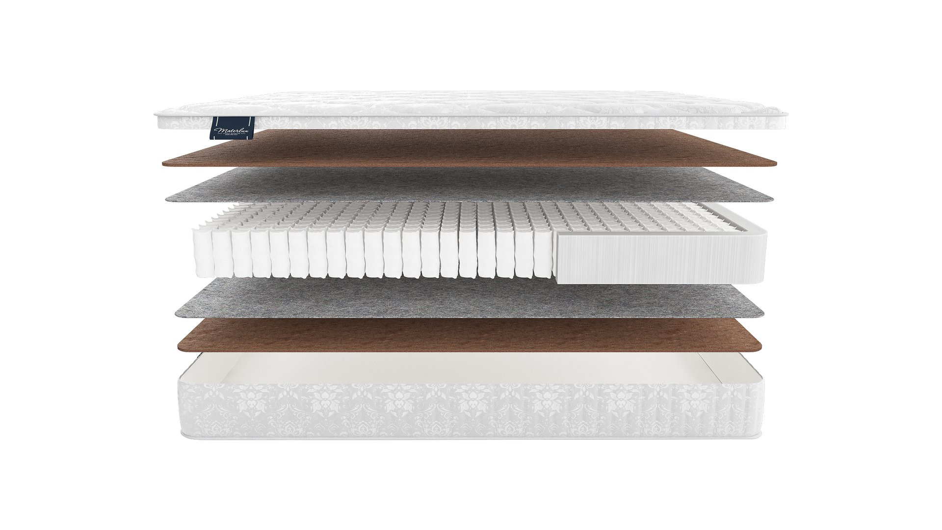 • Матрас достаточной жесткости, состоящий из независимого пружинного блока и двух слоев латексированного кокоса по обеим сторонам.