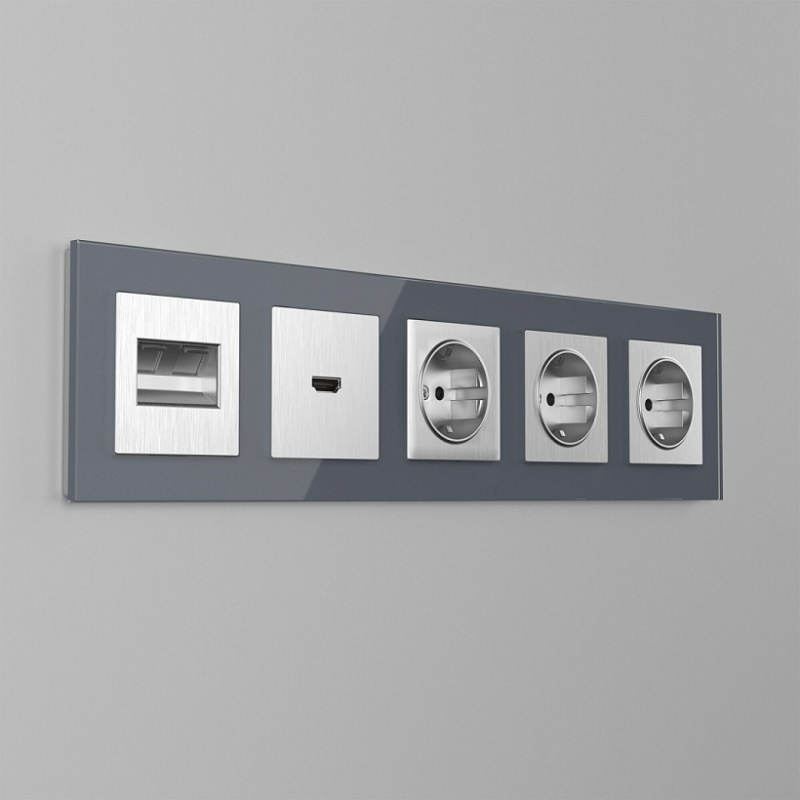 Отзывы о Накладка для двойной розетки Еthernet RJ-45 серебряный рифленый W1191109