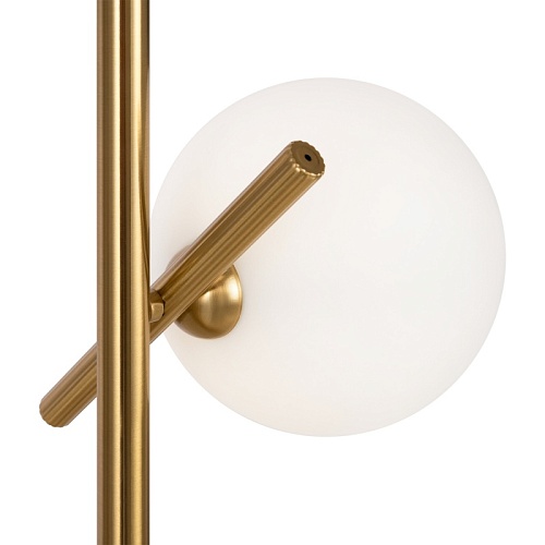 Материал арматуры — рифленый металл, цвет — латунь. Плафоны-сферы из белого матового стекла для мягкого заливающего света. Воздушный образ плафонов, строгие тонкие линии арматуры придадут интерьеру изящество и легкость. Высота подвесов регулируется. Источник света — лампы с цоколем G9.