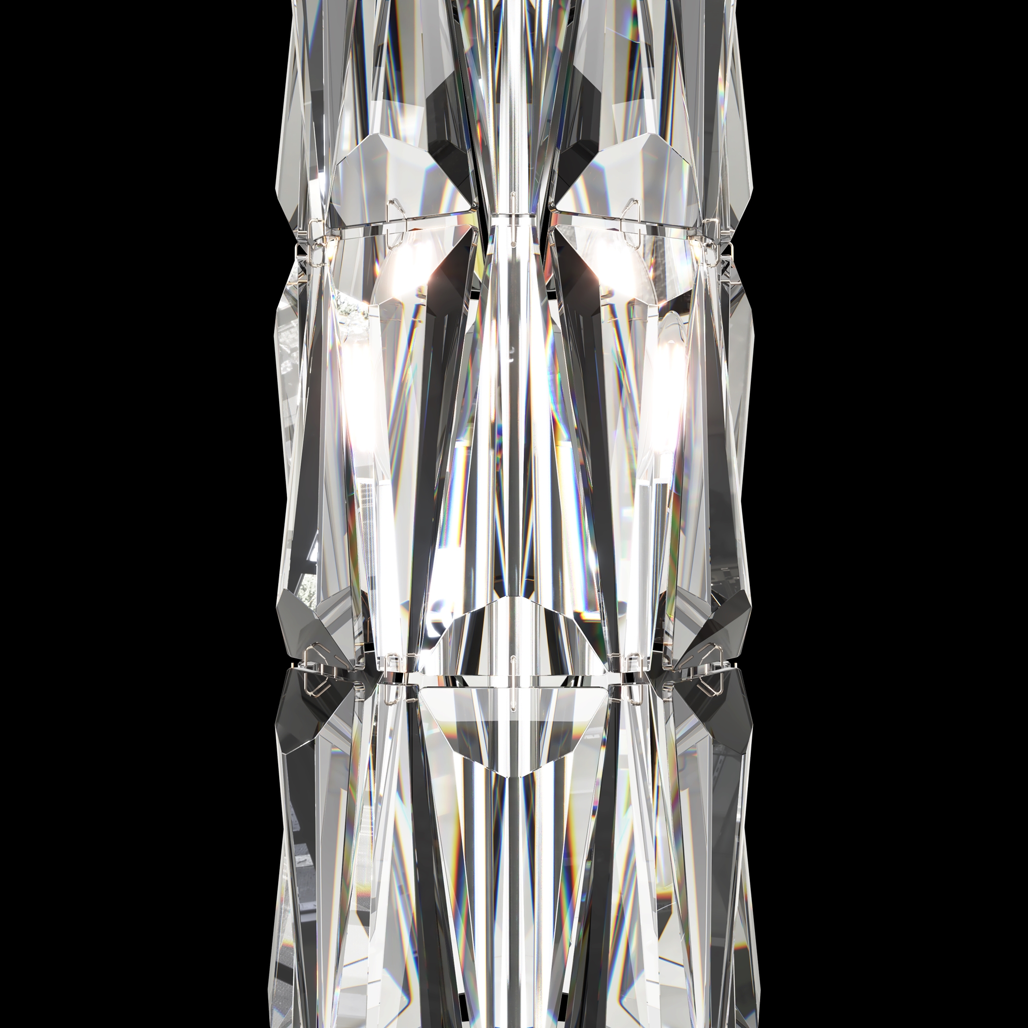 Материал арматуры – металл, оттенки – хром и золото. Декор – массивные крис таллы сложной огранки. Высота подвесных моделей регулируется длиной цепи. Источник света - лампа с цоколем Е14.