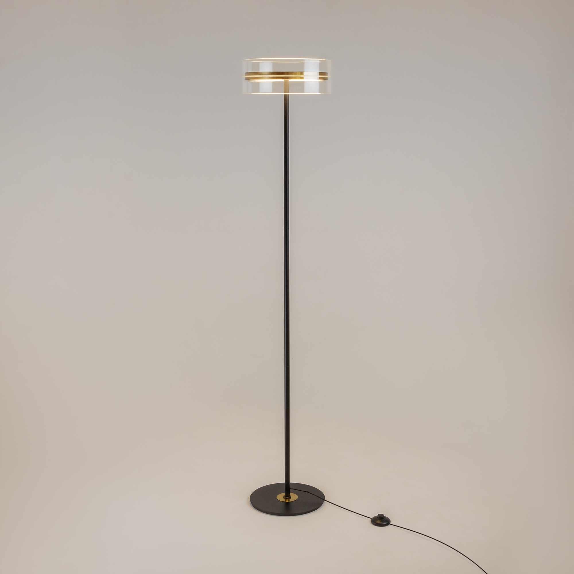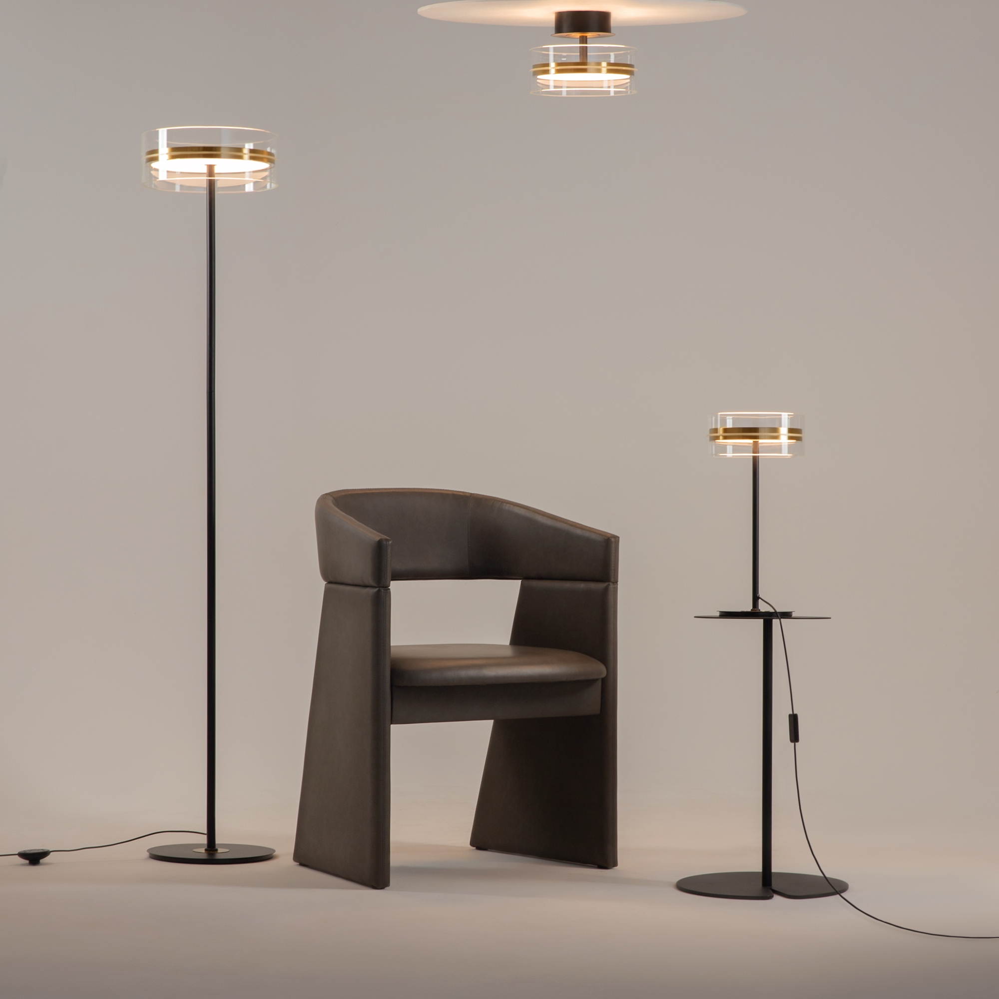 Плафоны подчеркнуто лаконичной формы в виде правильного цилиндра из стекла, дополненные металлической комбинированной черно-латунной арматурой. Источник света: LED. Цветовая температура — 3000К, угол рассеивания — 120 градусов. Провод длиной 3 метра можно регулировать. Светильники серии оснащены функцией диммирования: бесступенчатое управление у настольного светильника, а также 3 ступени регулировки - у торшера, подвесных и потолочного светильников. Светильники серии Dress code отличаются строгим и сдержанным дизайнерским оформлением.