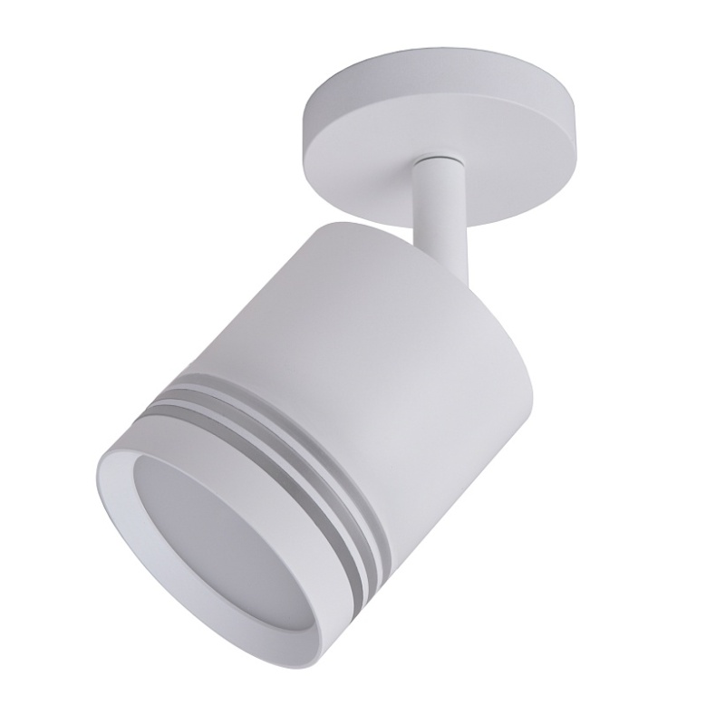 накладной светильник, каркас белого матового цвета, прозрачные декоративные элементы в виде колец, угол поворота до 90°, лампу GU10 можно менять.