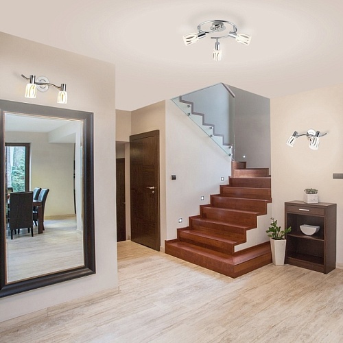 • Важный фактор для потолочных ламп и люстр – направление рассеивания света. Есть различные варианты и направления. В сторону, вверх или вниз, на пол. Если вы выбрали направление «вверх», следует рассмотреть более мощную лампу, так как освещение будет происходить при помощи отраженного от потолка света.