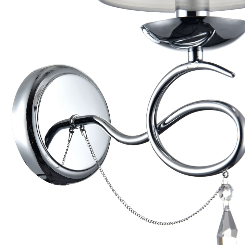 Светлые абажуры из ткани сочетаются с металлической арматурой и декоративными кристаллами на арматуре и подвесках. Светильники Haley подходят для интерьеров в классическом стиле, например, для гостиных и спален.