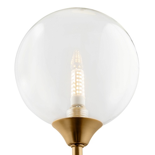 Материал арматуры – металл. Цвет – золотая бронза. Плафоны сферической формы. Материал – прозрачное дутое стекло. Регулируемое крепление плафонов позволяет менять дизайн и направление светового потока. Источник света – лампа G9.