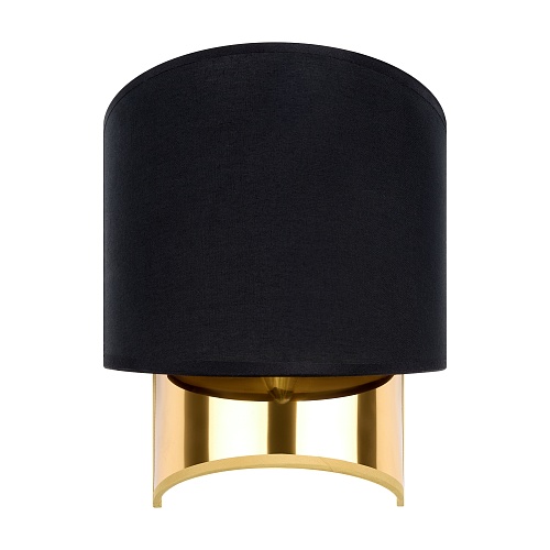 Металлическая арматура. Цвет – латунь. Черный тканевый абажур дополнен окантовкой золотого цвета. Трендовая комбинация контрастных оттенков и фактур. Источник света – лампа с цоколем Е14.
