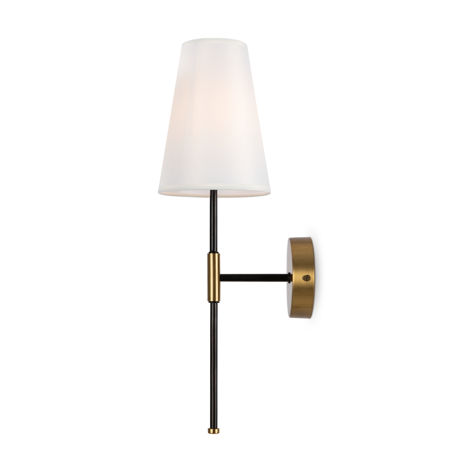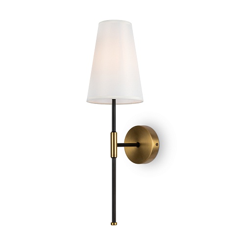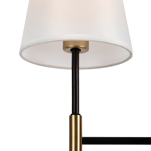 Материал арматуры – металл. Оттенки: хром, комбинация черного и латуни. Абажуры – белая ткань. Акцентный вытянутый силуэт. Источник света – лампа с цоколем E14.