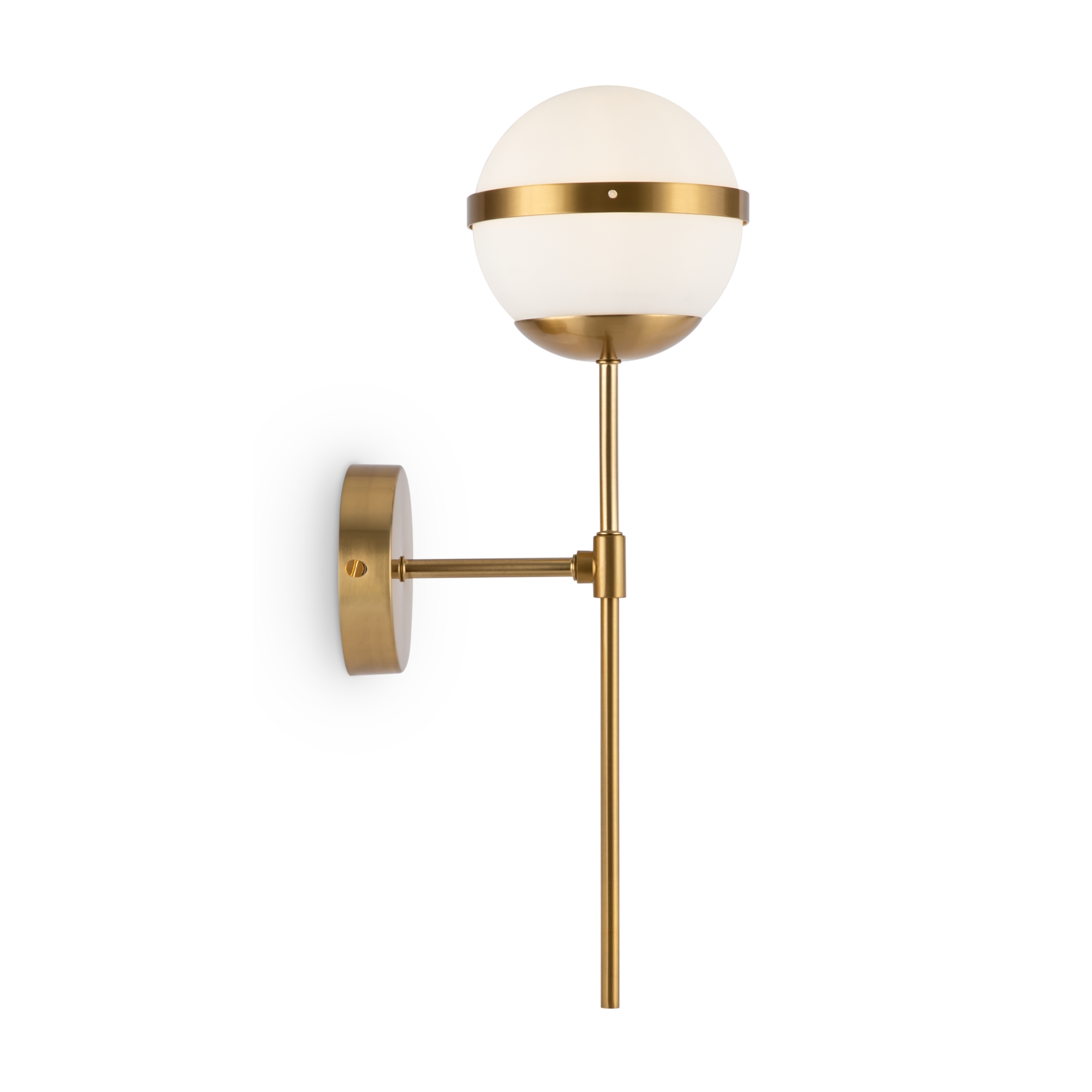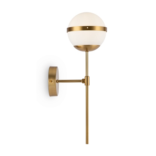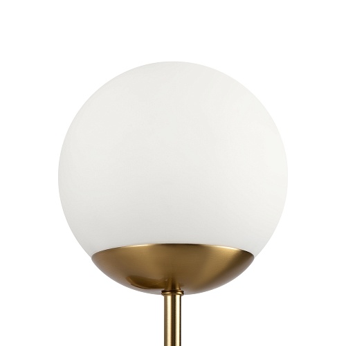 Материал арматуры – металл, цвет – латунь. Плафоны из матового белого стекла. Декор плафонов – металлический кант в тон арматуре. Оригинальная геометрия в дизайне создает динамичный образ. Источник света – лампа с цоколем Е27.