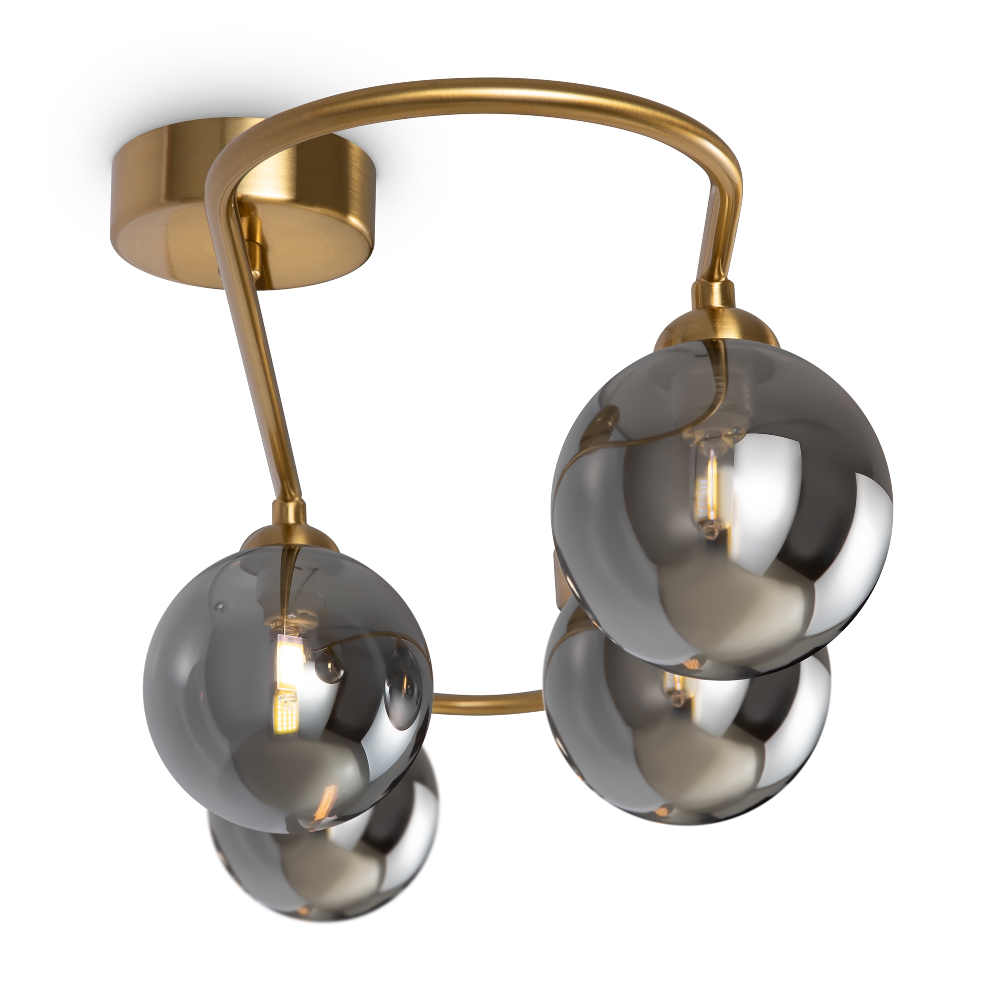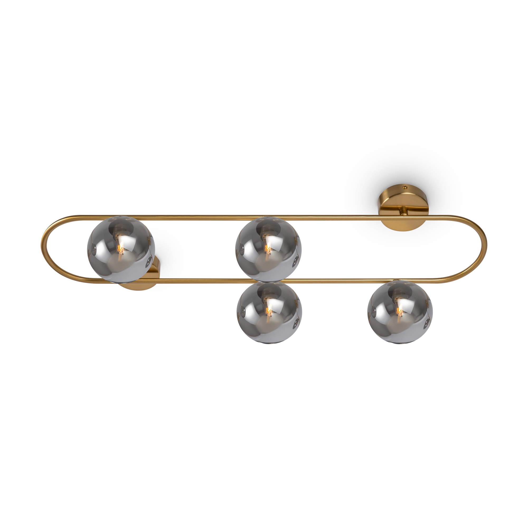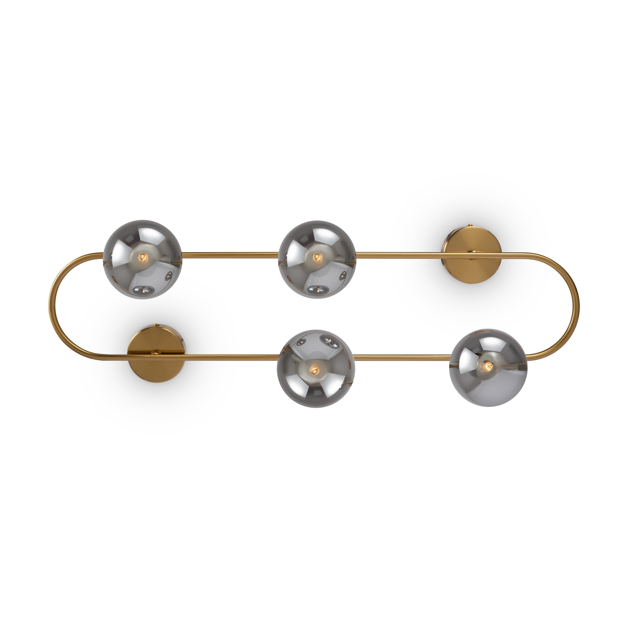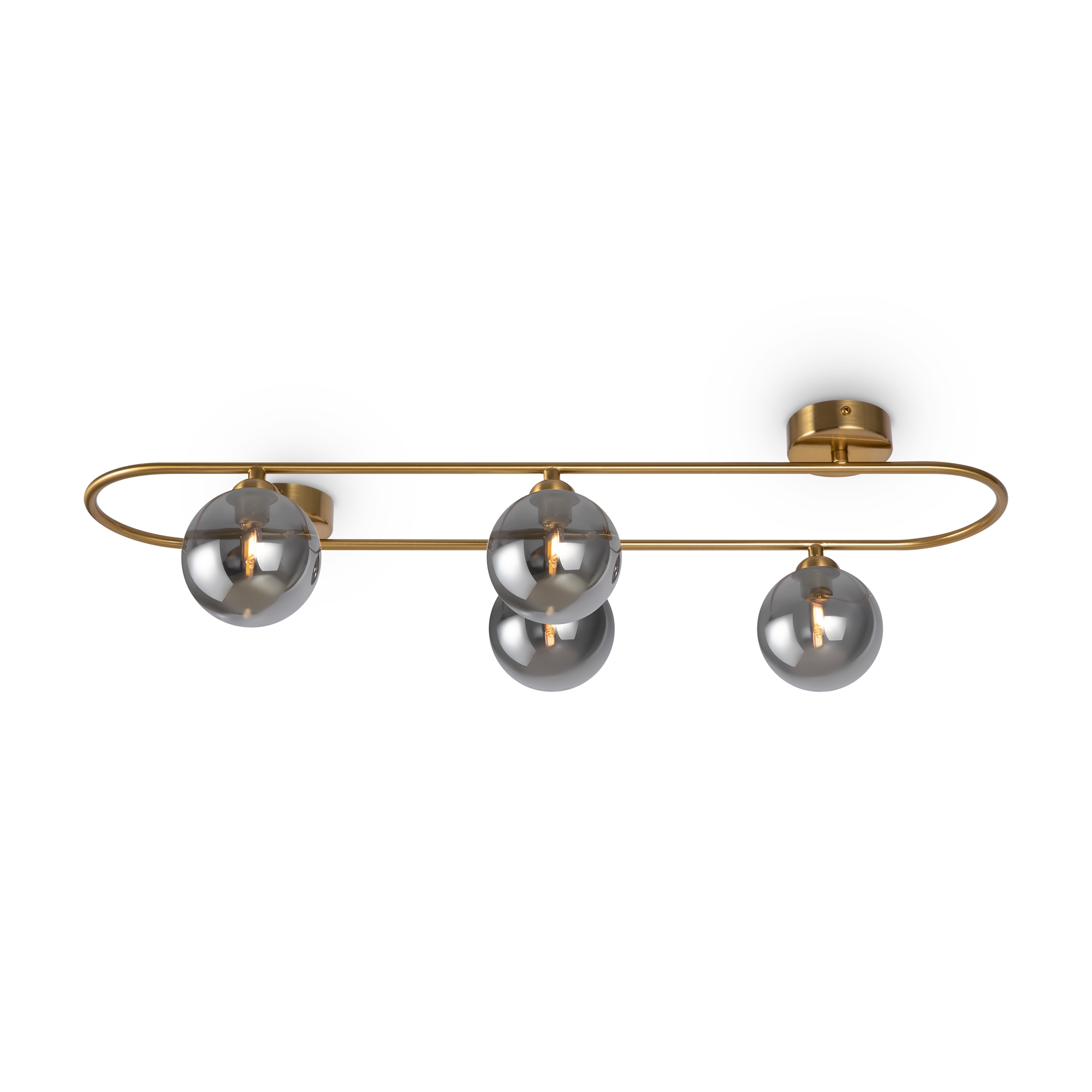 Арматура - металл, цвет - латунь. Стеклянные плафоны-сферы в двух оттенках белый матовый и дымчатый в настенно потолочной версии. Округлые и плавные линии - беспроигрышное сочетание для современных интерьеров. Настенные бра можно использовать как для общего на потолке так и для зонального настенного освещения Источник света - лампа с цоколем G9.