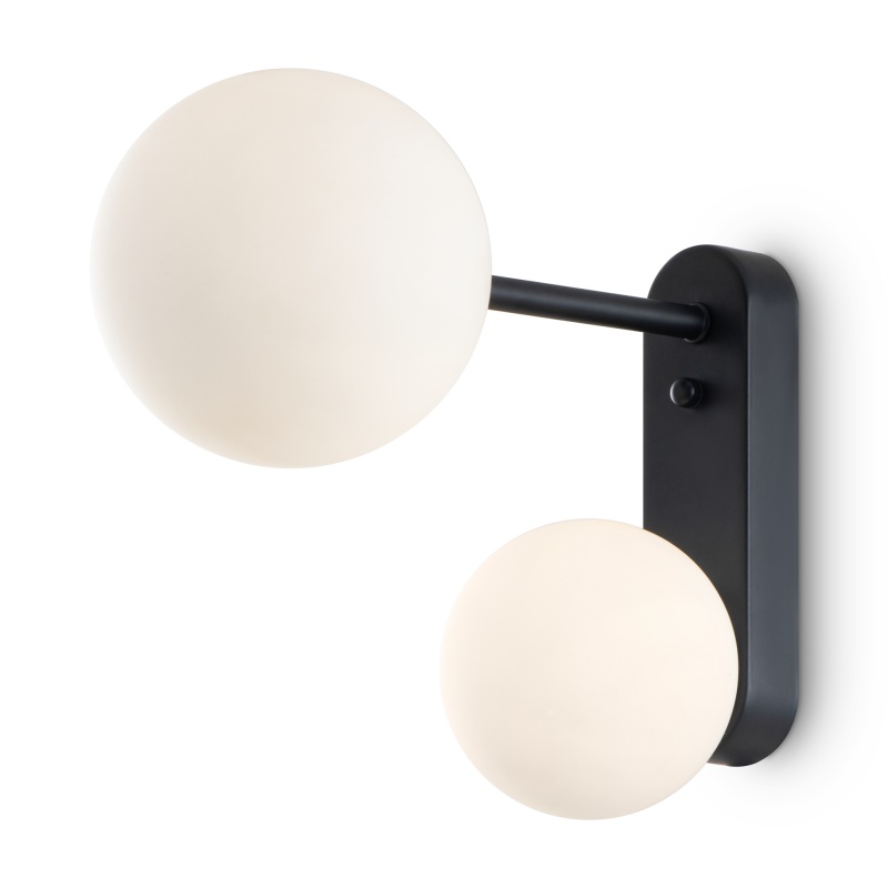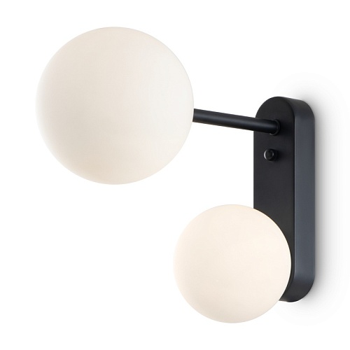 Металлическая арматура. Цвет — чёрный с золотистыми вставками. Плафоны — круглые из белого матового стекла - обеспечивают мягкое заливное освещение. На корпусе бра удобная кнопка для включения. Дизайн — минималистичный Источник света — лампа с цоколем G9.