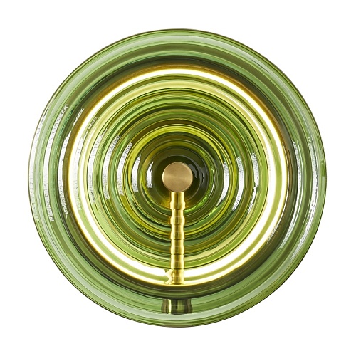 Арматура - металл. Цвет арматуры латунь. Плафоны из стекла в форме леденцов выполнены в четырех цветах: серый, зеленый, прозрачный и желто-оранжевый. Широкий спектр типов светильников: торшеры, настенные бра и подвесы. LED источник света. Цветовая температура 3000К.