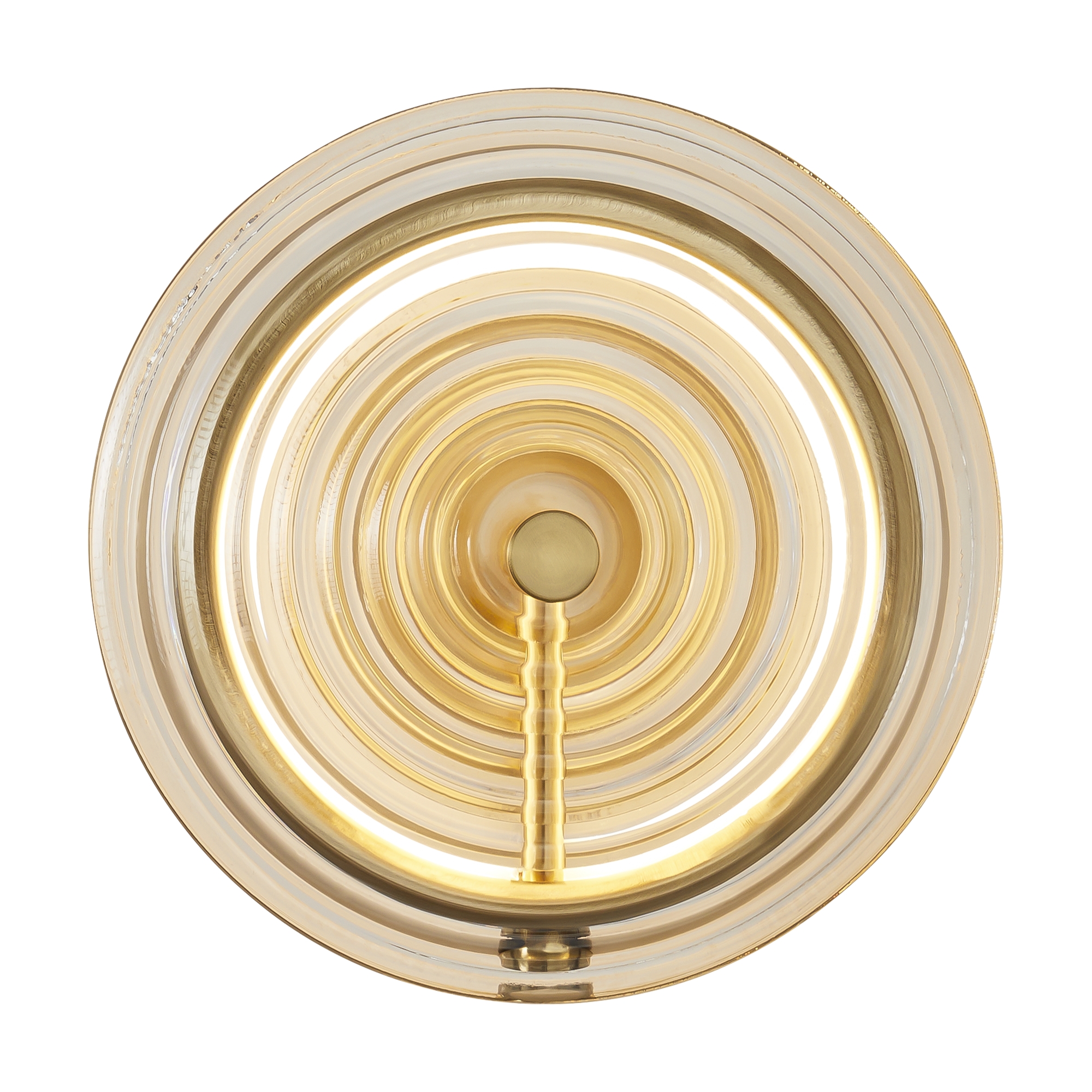 Арматура - металл. Цвет арматуры латунь. Плафоны из стекла в форме леденцов выполнены в четырех цветах: серый, зеленый, прозрачный и желто-оранжевый. Широкий спектр типов светильников: торшеры, настенные бра и подвесы. LED источник света. Цветовая температура 3000К.