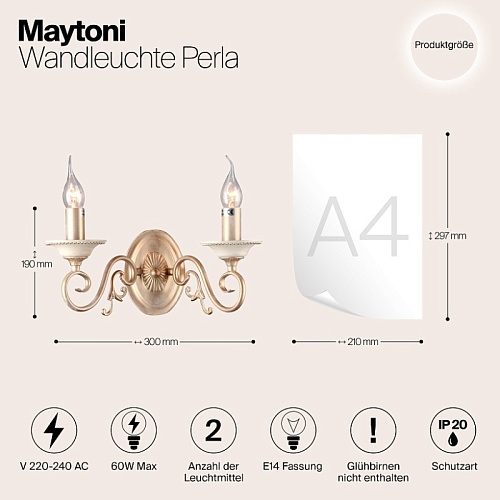 Характеристики Настенный светильник (бра) Maytoni Perla ARM337-02-R