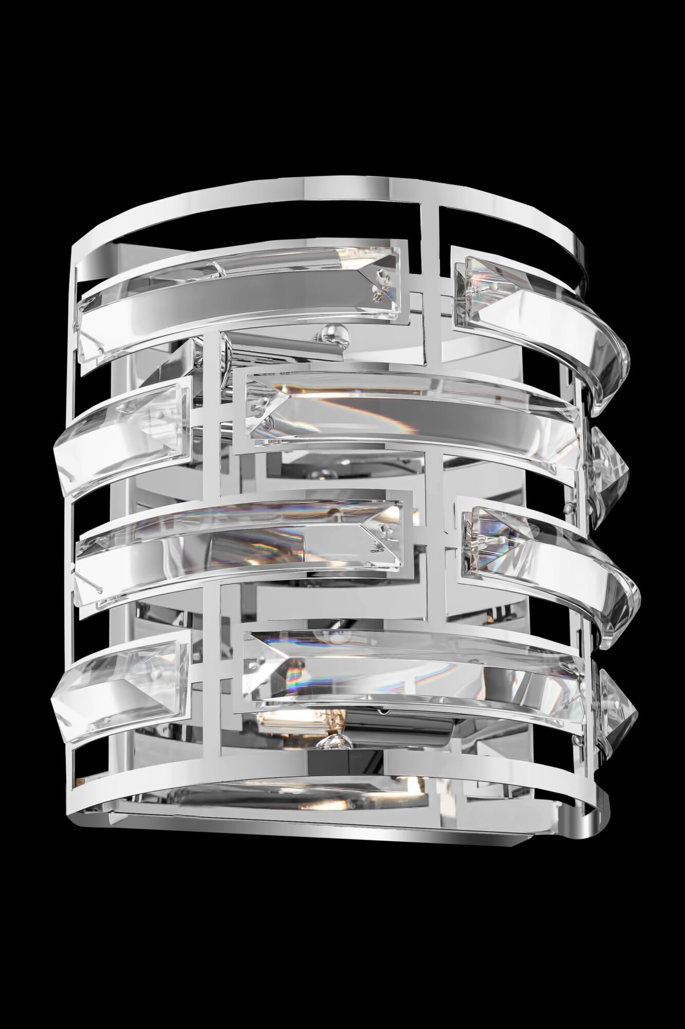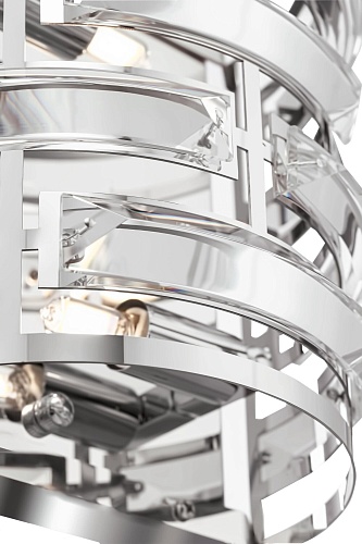 Арматура из нержавеющей стали, цвет арматуры – хром. Металлический каркас абажура декорирован прозрачным хрусталем. Высота подвесных моделей регу лируется.