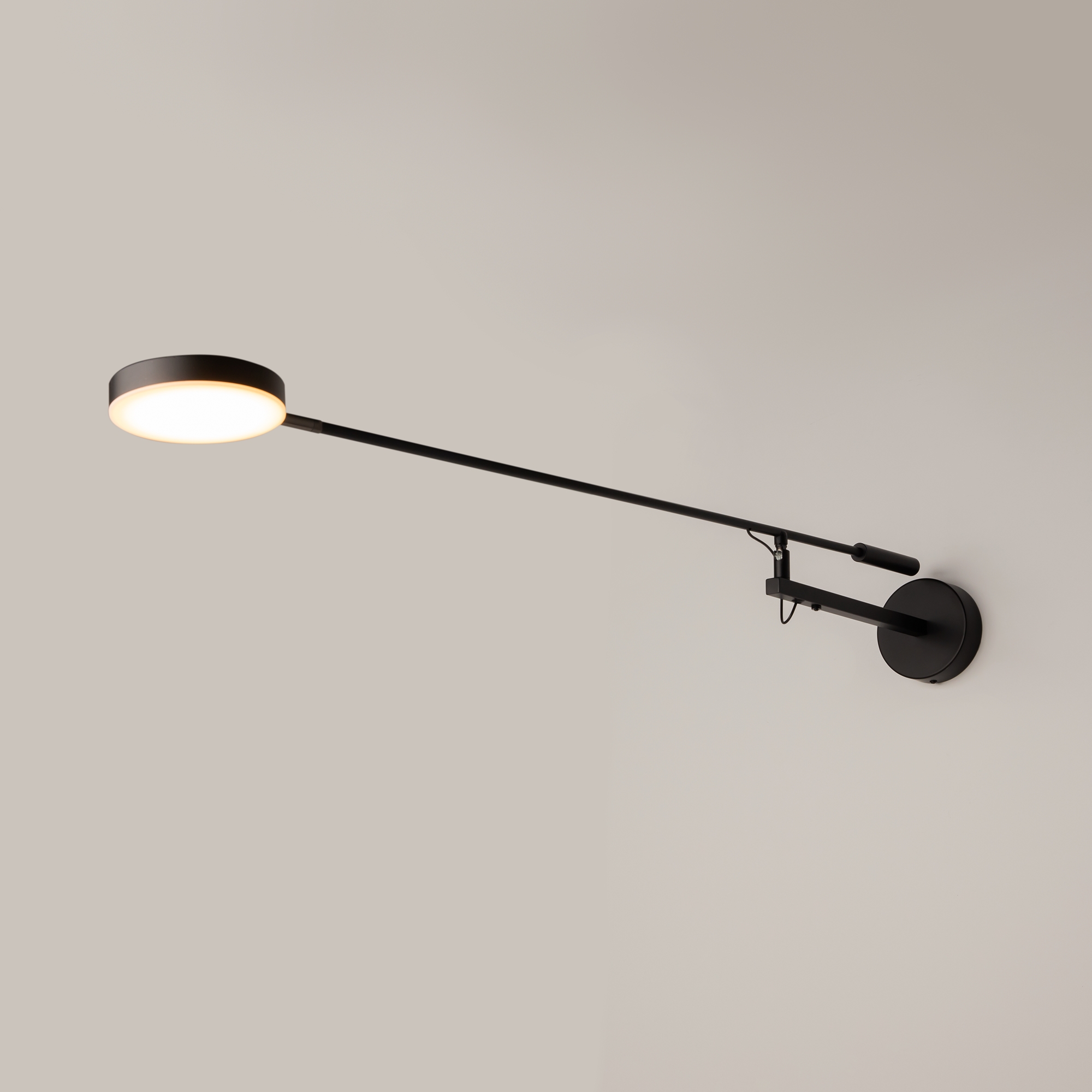 Плафоны и арматура из металла. Цвет рассеивателя — белый, арматура черная или белая. Конструкция предусматривает шарнирный механизм, позволяющий регулировать направление света и высоту светильников. Плафоны вращаются на 90 и 360° (в вертикальной и горизонтальной плоскостях). Угол рассеивания — 120 градусов. Тип света — рассеянный.