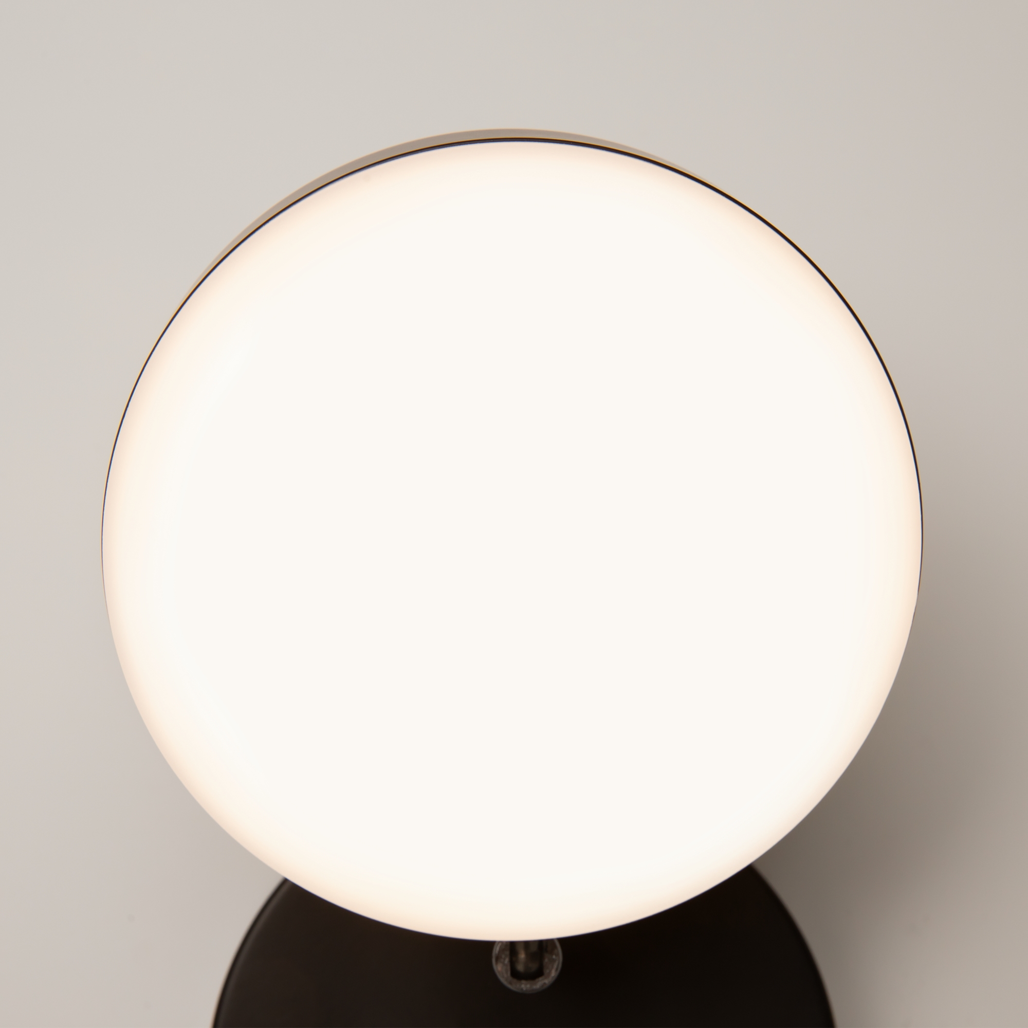 Плафоны и арматура из металла. Цвет рассеивателя — белый, арматура черная или белая. Конструкция предусматривает шарнирный механизм, позволяющий регулировать направление света и высоту светильников. Плафоны вращаются на 90 и 360° (в вертикальной и горизонтальной плоскостях). Угол рассеивания — 120 градусов. Тип света — рассеянный.