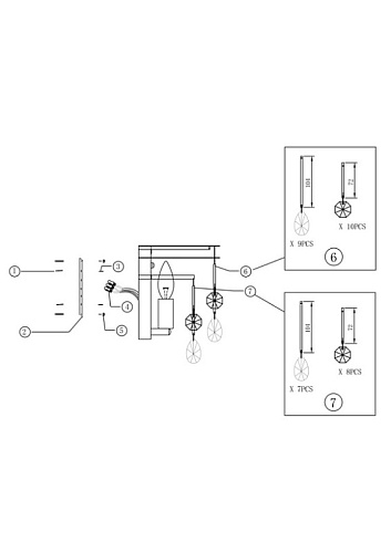 Материал арматуры – металл, оттенки – золото и хром. Комбинация металла и хрусталя в декоре. Металлические трубки гальванизированы в тон арматуре. Хрустальные подвески обрамляют композицию. Высота люстр регулируется с помощью цепи. Цоколь Е14.